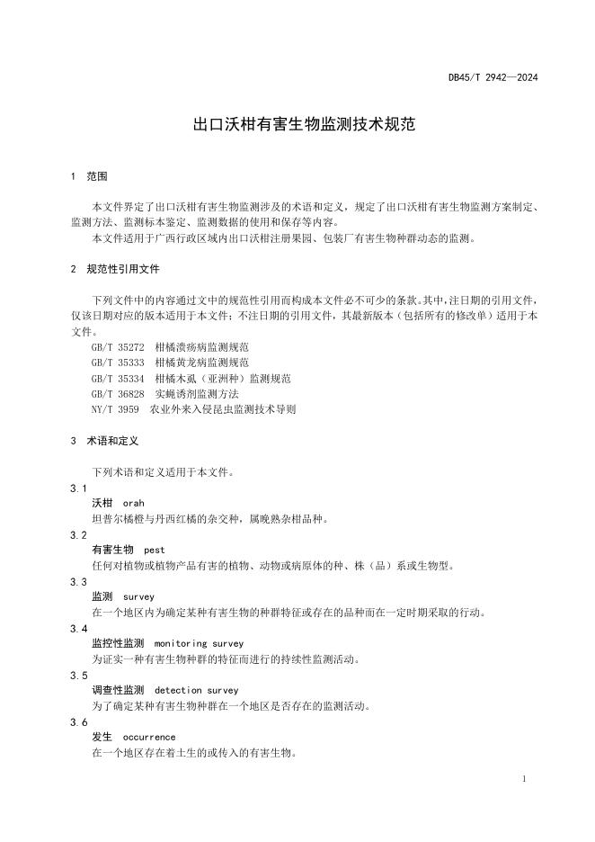 DB45/T 2942-2024 出口沃柑有害生物监测技术规范
