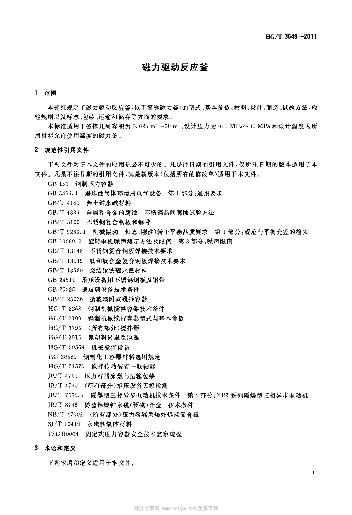 HG/T 3648-2011 代替 HG/T 3648-1999 磁力驱动反应釜