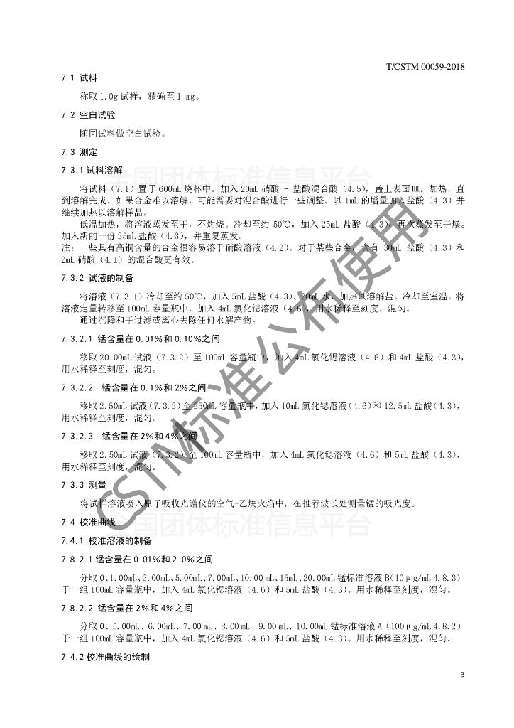 T/CSTM 00059-2018 镍合金 锰含量的测定 火焰原子吸收光谱法
