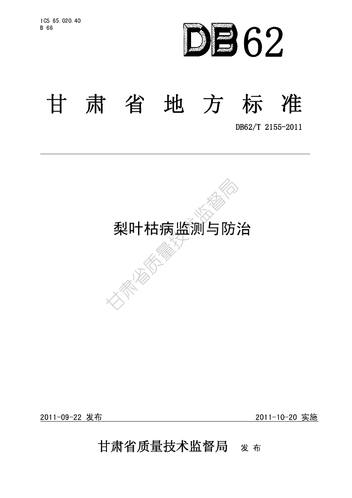 DB62/T 2155-2011 梨叶枯病监测与防治