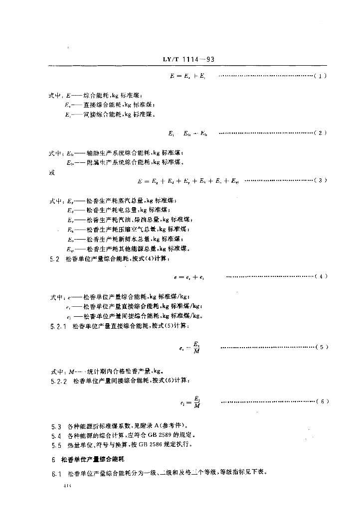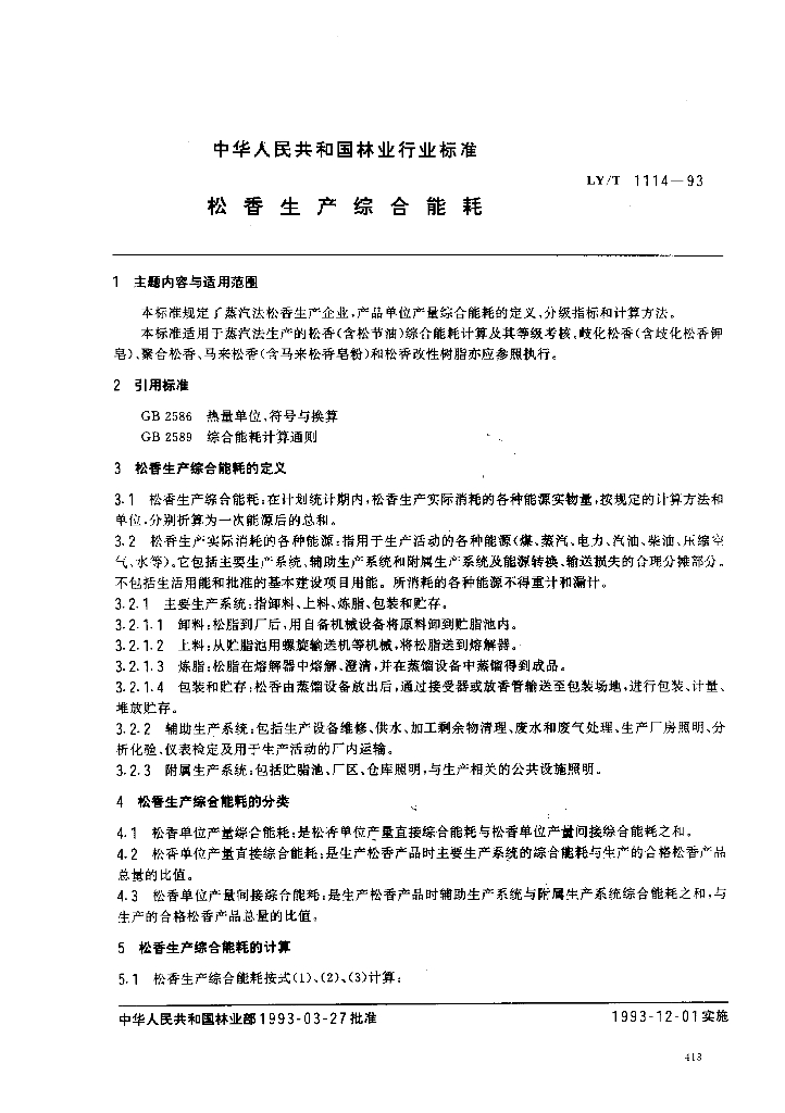 LY/T 1114-1993 松香生产综合能耗
