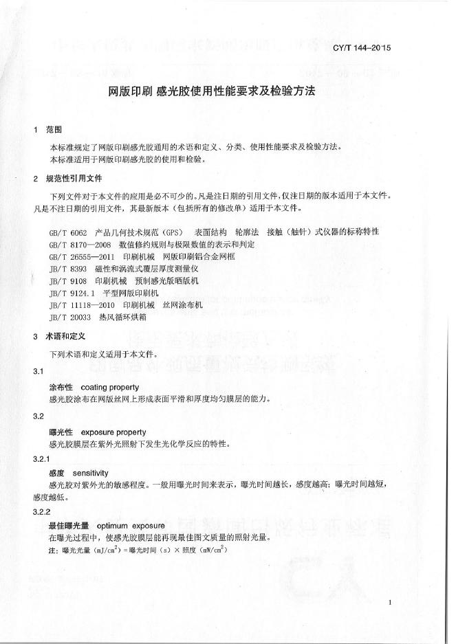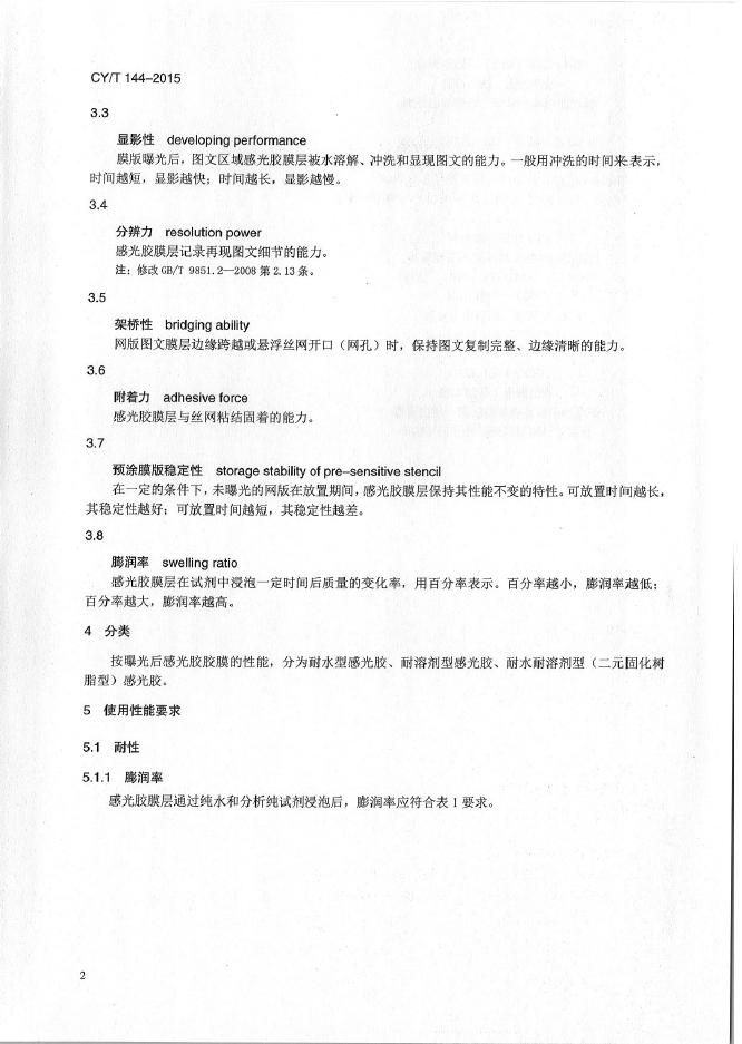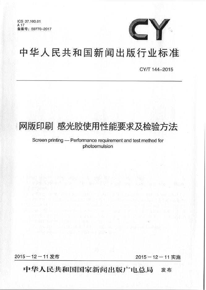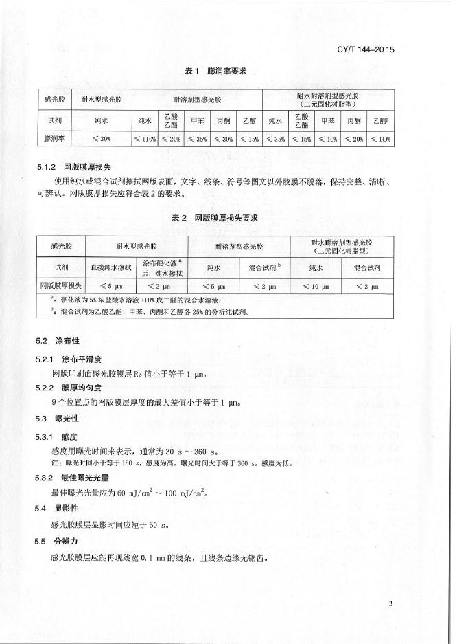 CY/T 144-2015 网版印刷 感光胶使用性能要求及检验方法