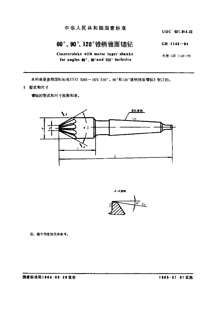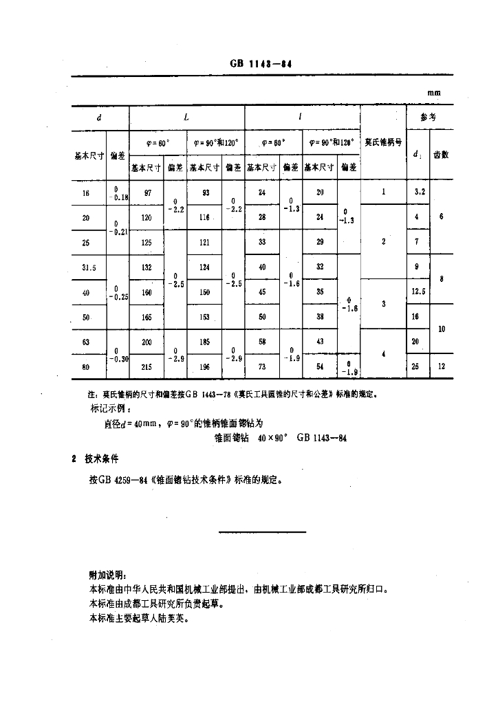 GB/T 1143-1984 60°、90°、120°锥柄锥面锪钻
