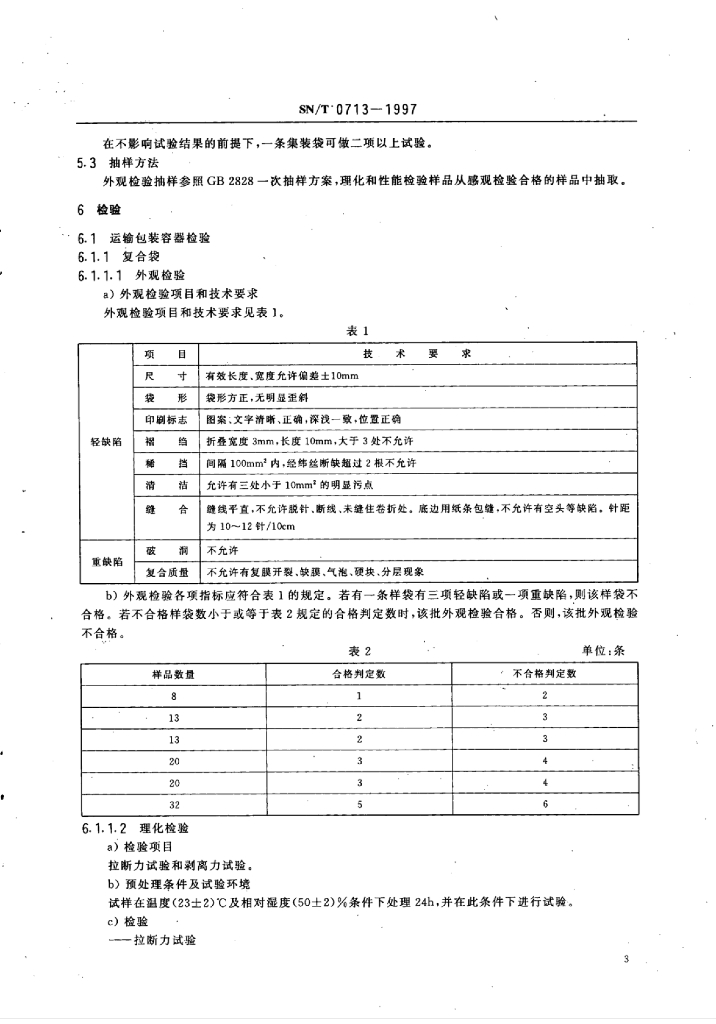 SN/T 0713-1997 出口水泥类商品运输包装检验规程
