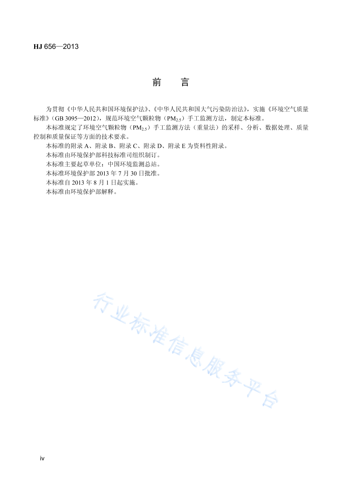 HJ 656-2013 环境空气颗粒物(PM2.5)手工监测方法(重量法)技术规范