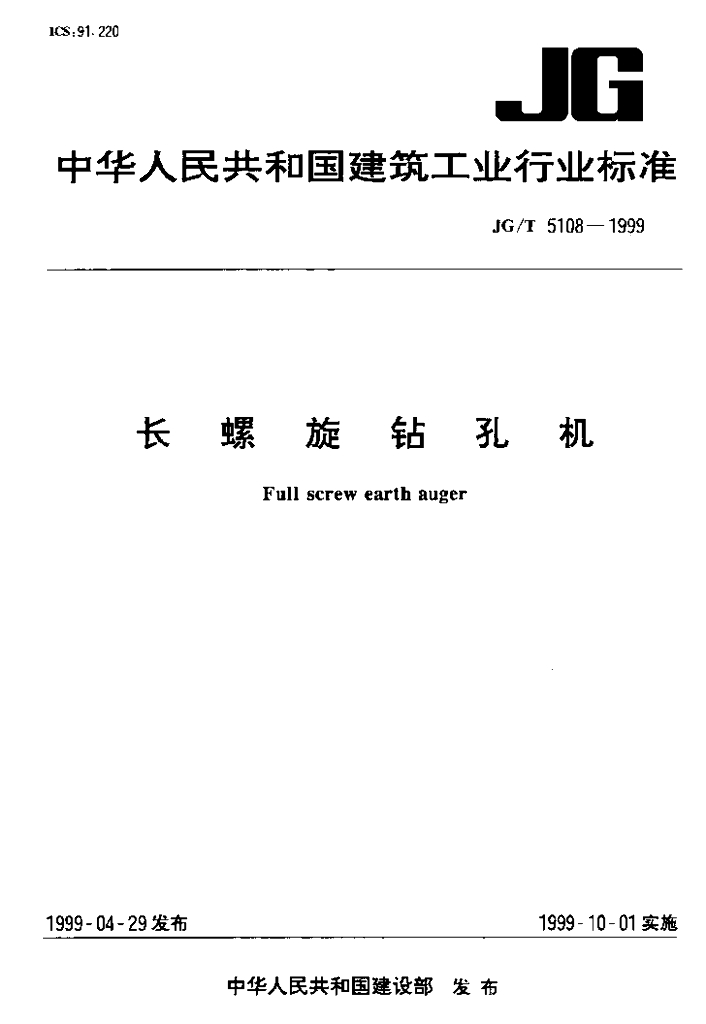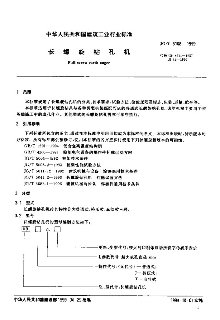 JG/T 5108-1999 长螺旋钻孔机
