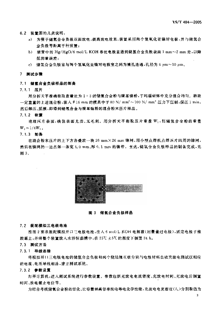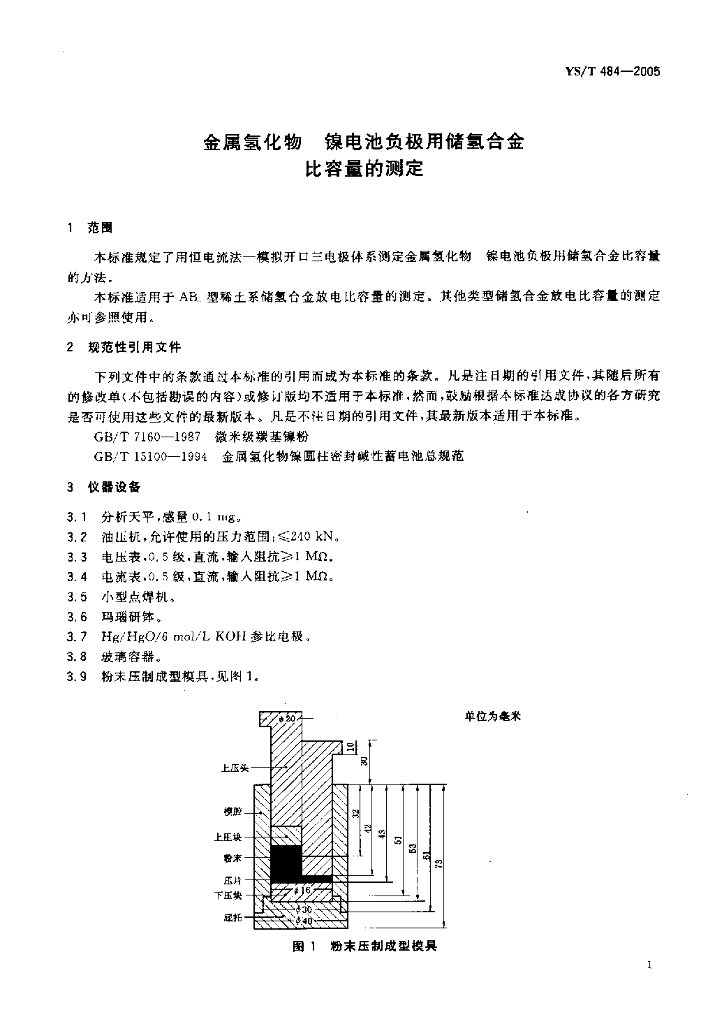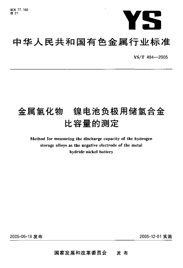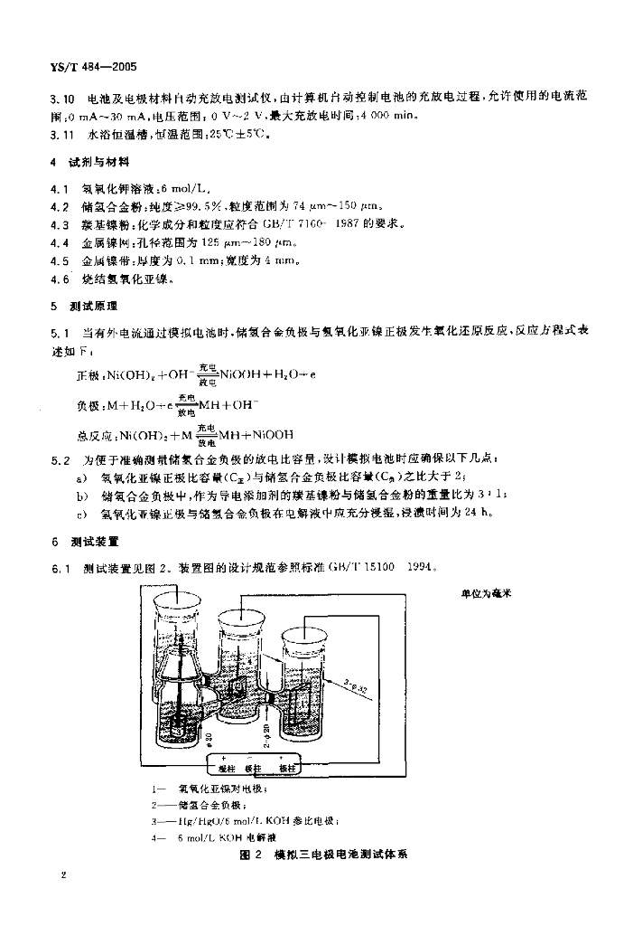 YS/T 484-2005 金属氢化物镍电池负极用储氢合金比容量的测定