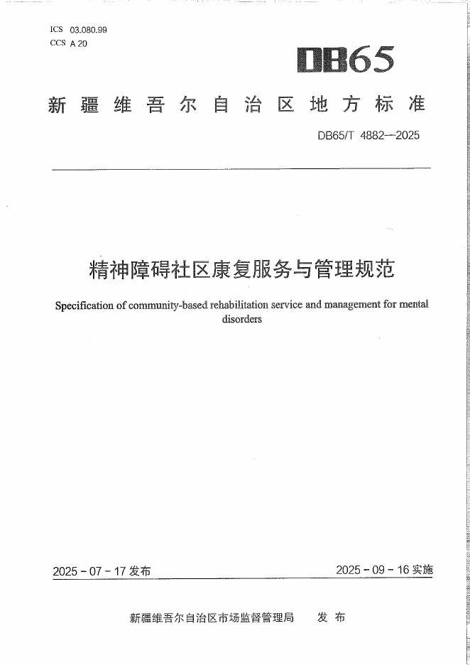 DB65/T 4882-2025 精神障碍社区康复服务与管理规范