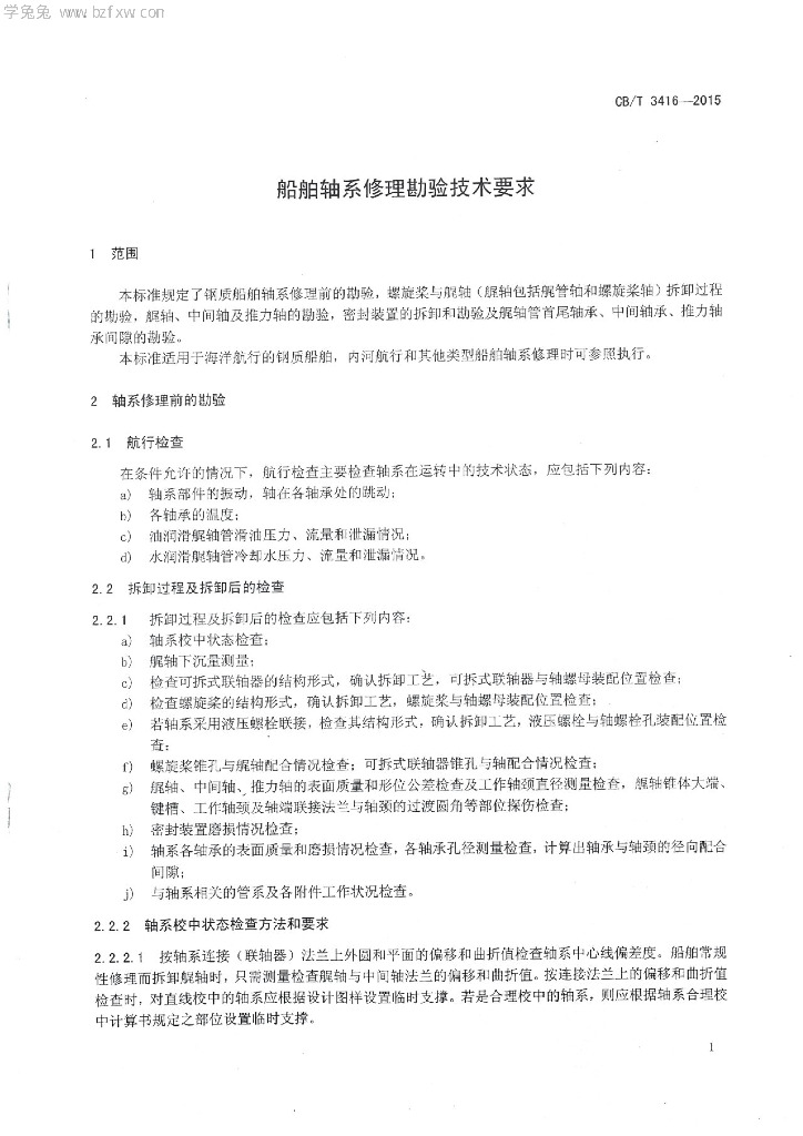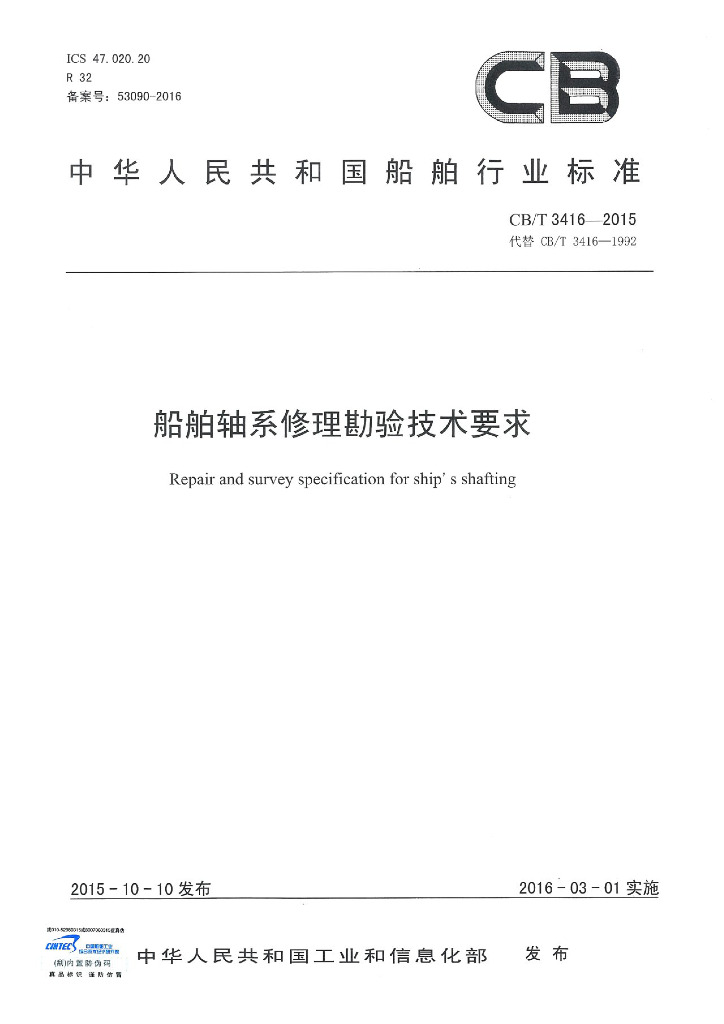 CB/T 3416-2015 船舶轴系修理勘验技术要求