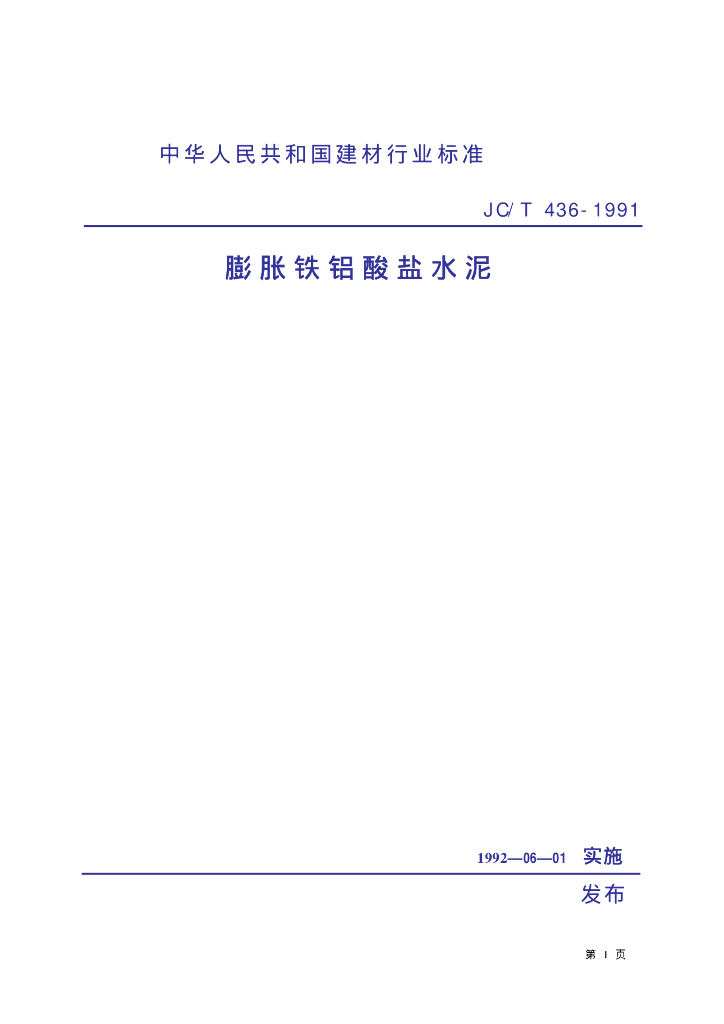JC/T 436-1991 膨胀铁铝酸盐水泥