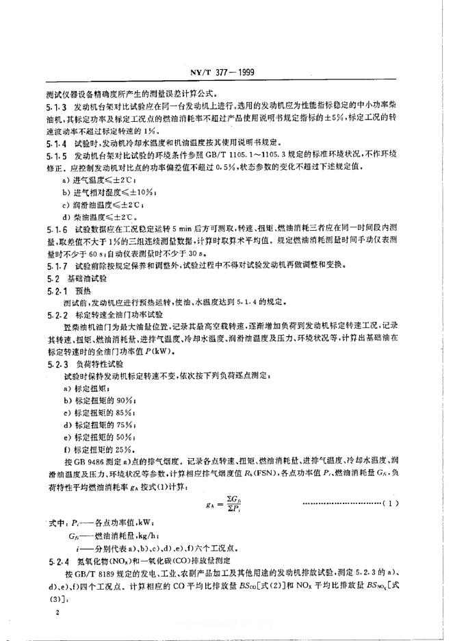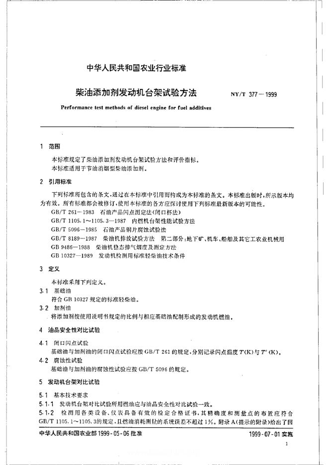 NY/T 377-1999 柴油添加剂发动机台架试验方法