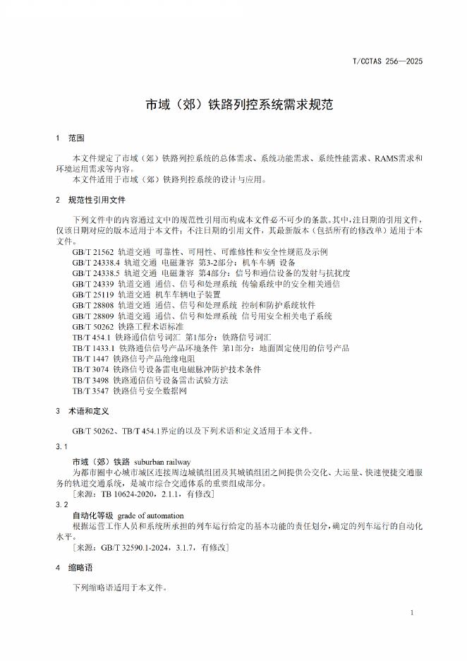 T/CCTAS 256-2025 市域(郊)铁路列控系统需求规范