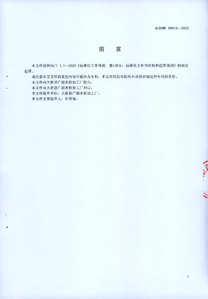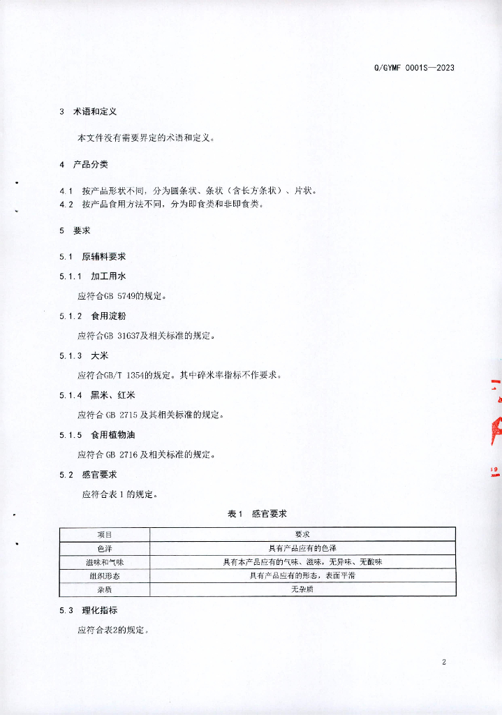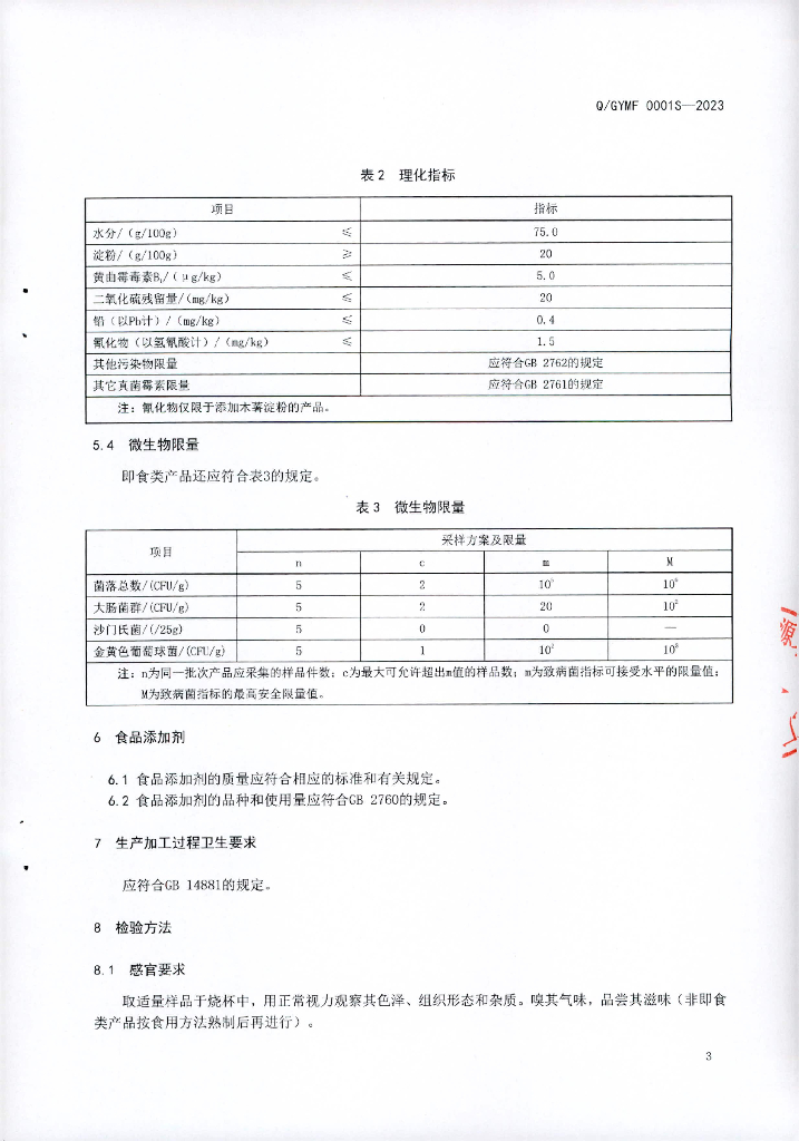 Q/GYMF 0001S-2023 鲜湿淀粉条(片)