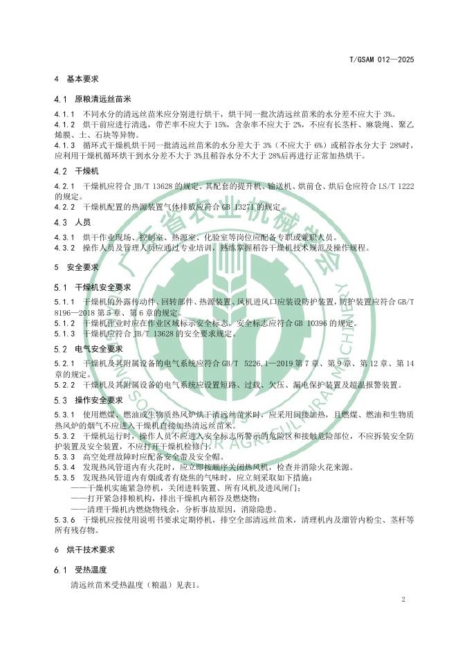 T/GSAM 012-2025 清远丝苗米烘干技术规范