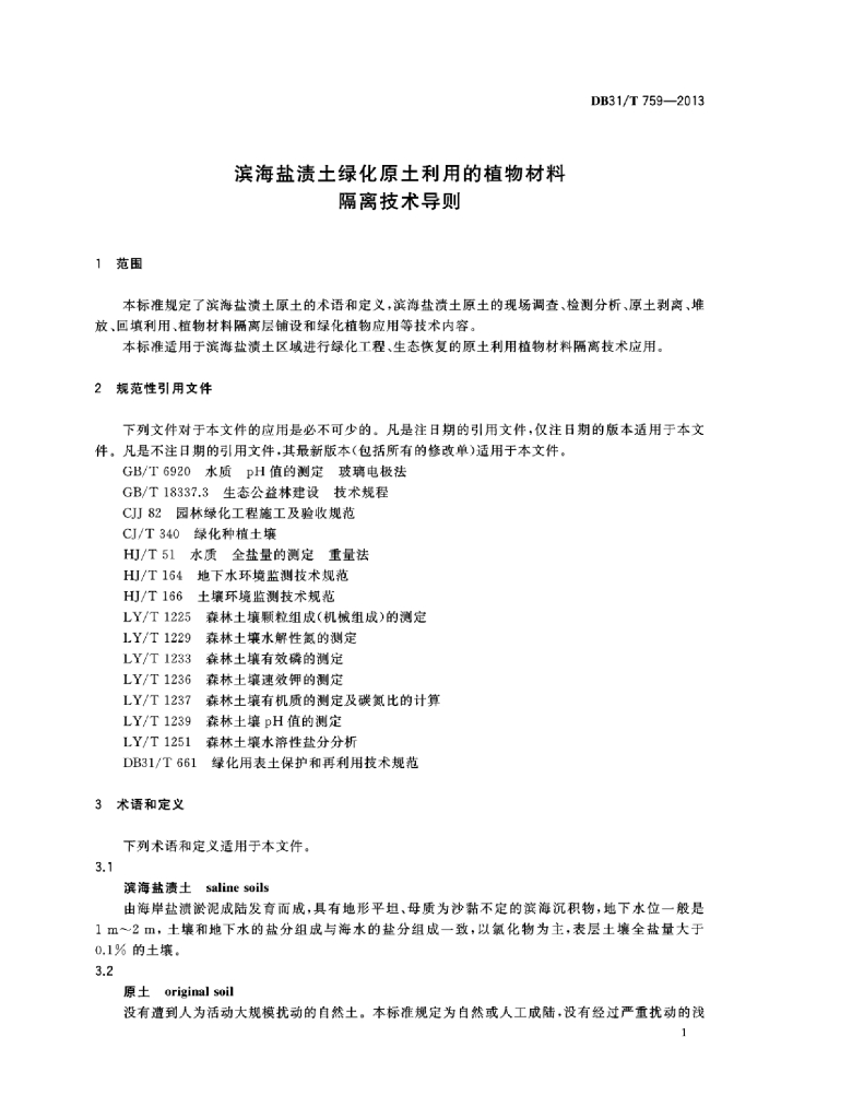 DB31/T 759-2013 滨海盐渍土绿化原土利用的植物材料隔离技术导则