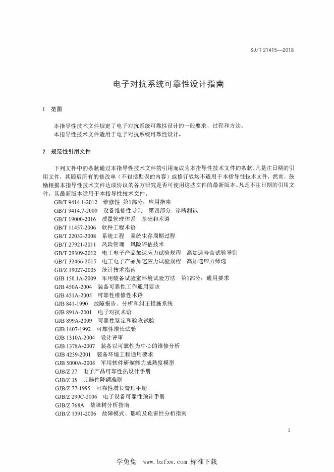 SJ/Z 21415-2018 电子对抗系统可靠性设计指南