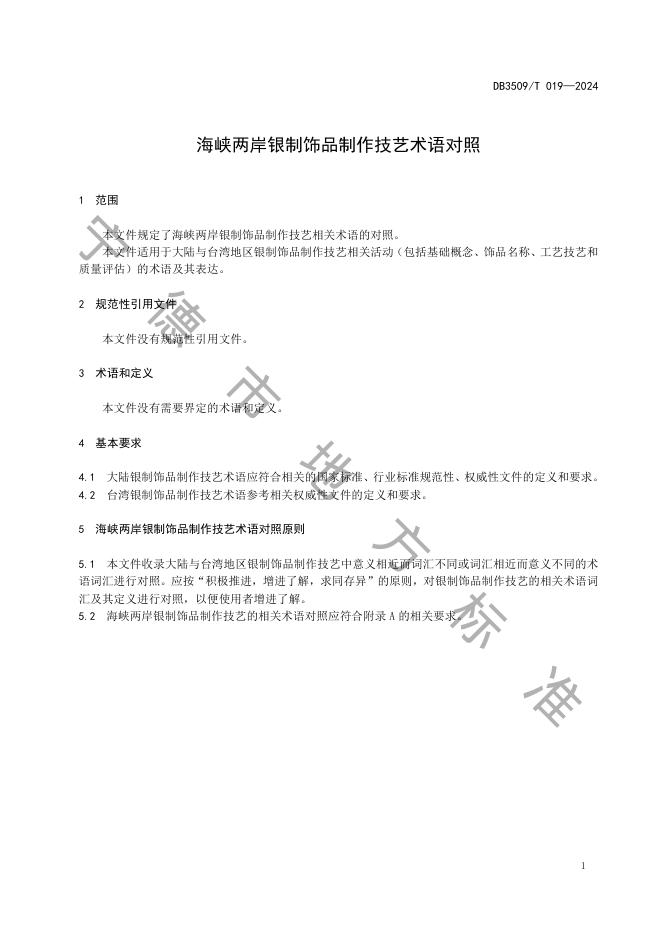 DB3509/T 019-2024 海峡两岸银制饰品制作技艺术语对照