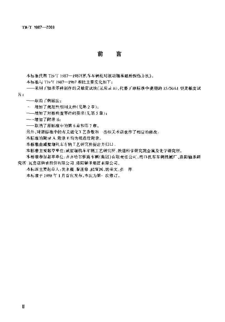 TB/T 1987-2003 机车车辆轮对滚动轴承磁粉探伤方法