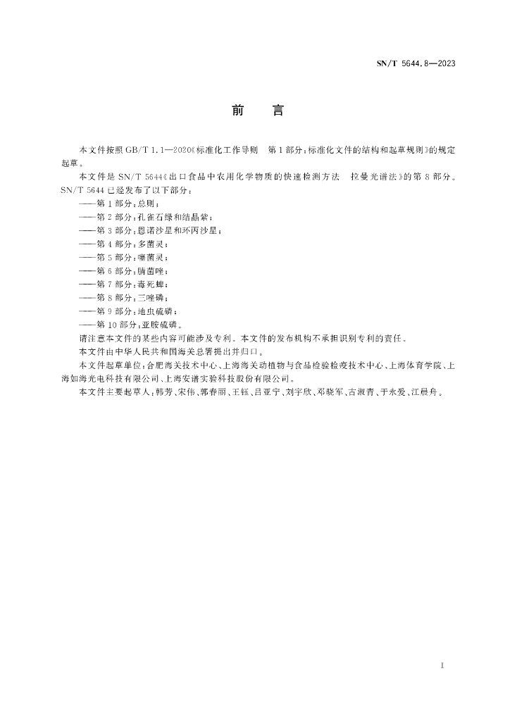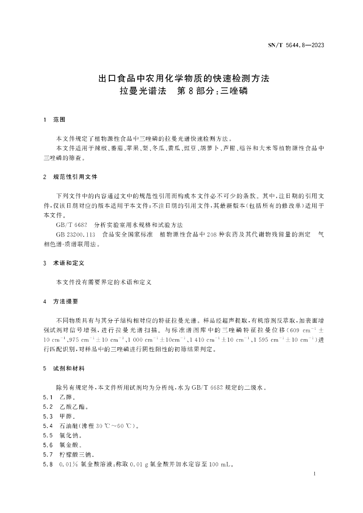 SN/T 5644.8-2023 出口食品中农用化学物质的快速检测方法 拉曼光谱法 第8部分:三唑磷