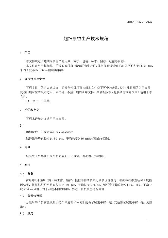 DB15/T 1530-2025 超细原绒生产技术规程