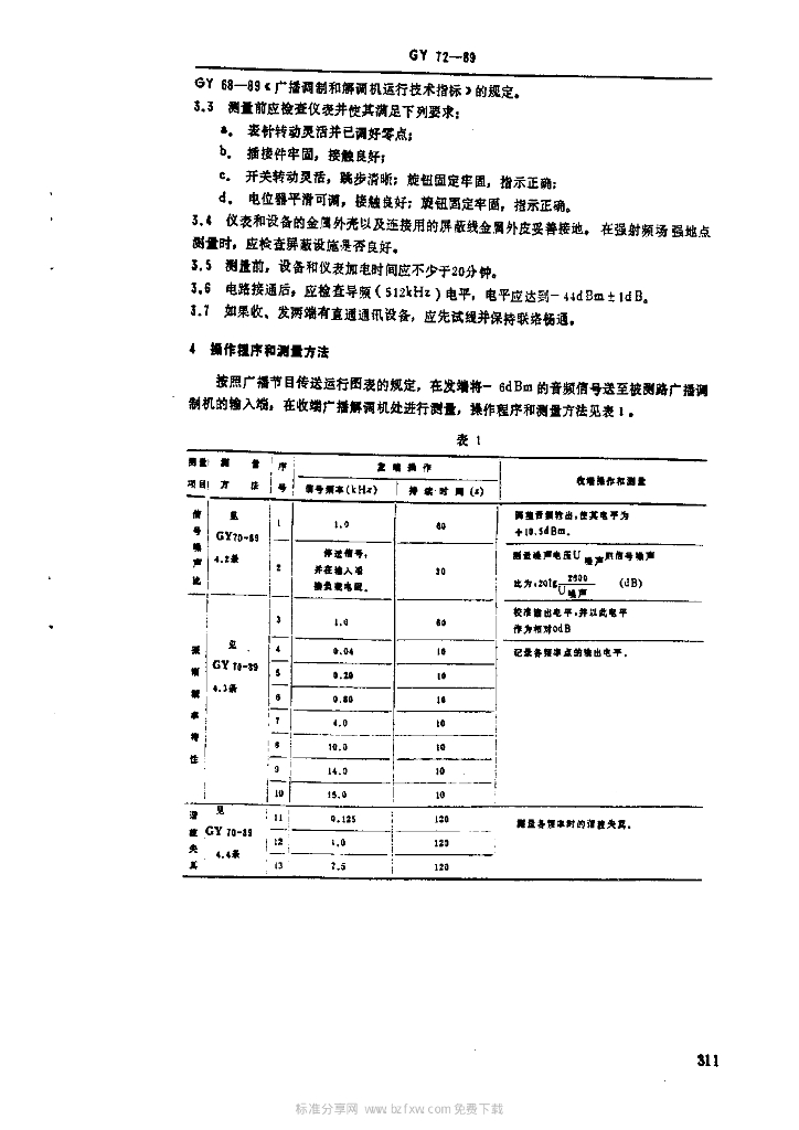 GY 72-1989 微波、卫星传送声音广播节目通路运行技术指标测量方法