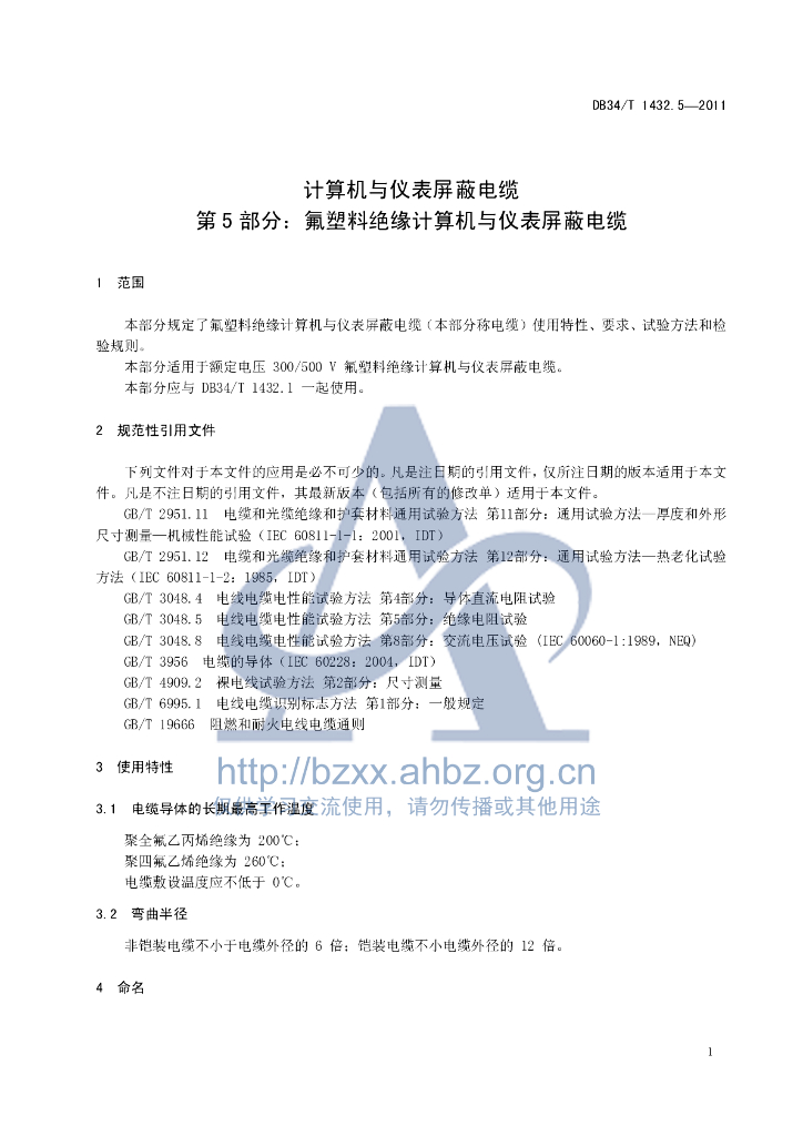 DB34/T 1432.5-2011 计算机及仪表屏蔽电缆 第5部分:氟塑料绝缘计算机与仪表屏蔽电缆