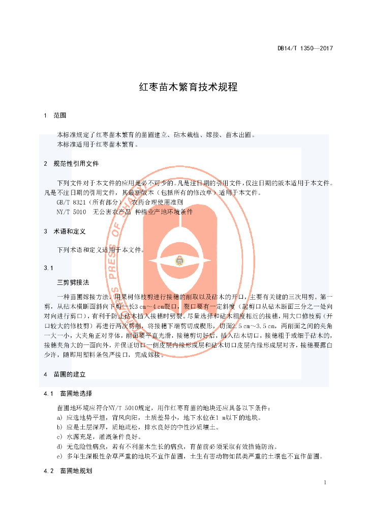 DB14/T 1350-2017 红枣苗木繁育技术规程