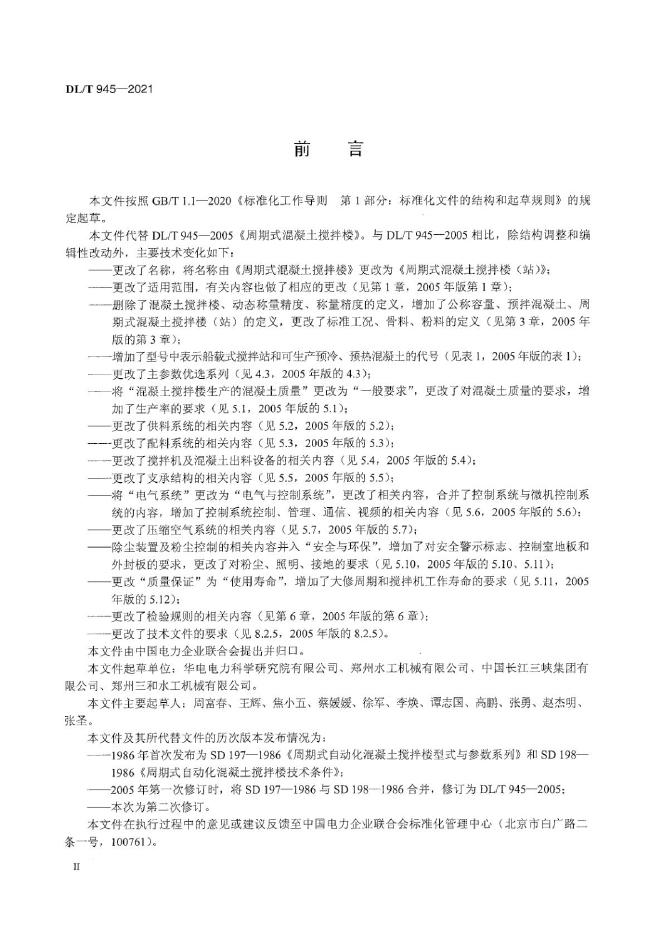 DL/T 945-2021 周期式混凝土搅拌楼(站)