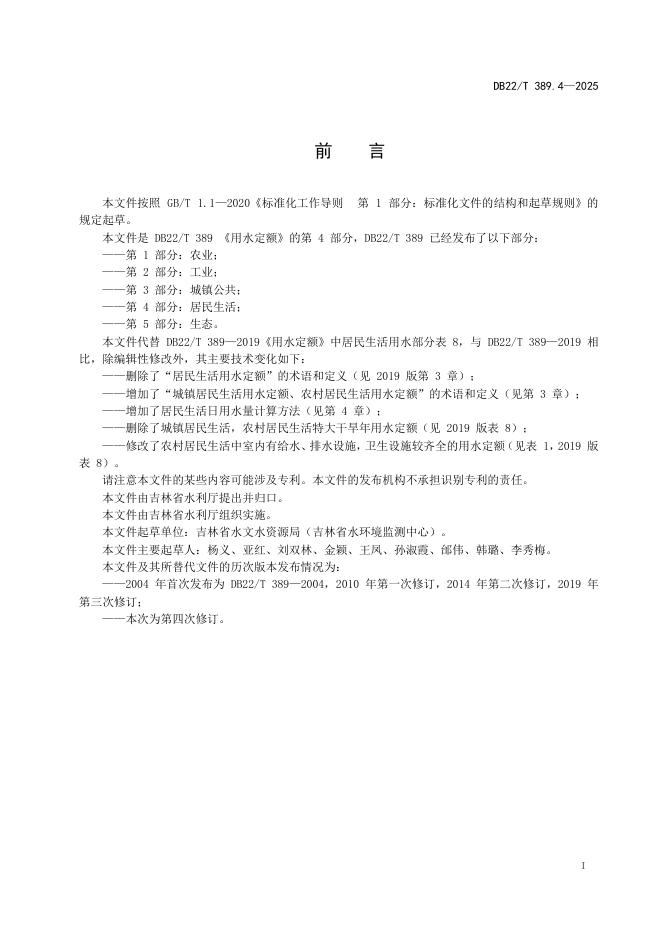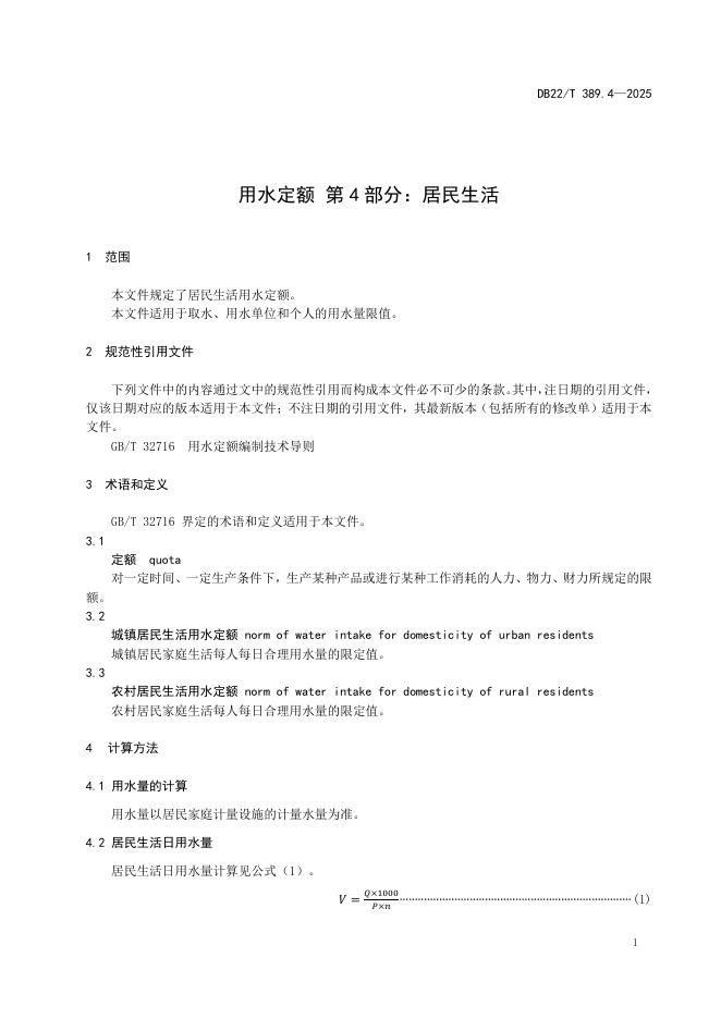 DB22/T 389.4-2025 用水定额 第4部分:居民生活