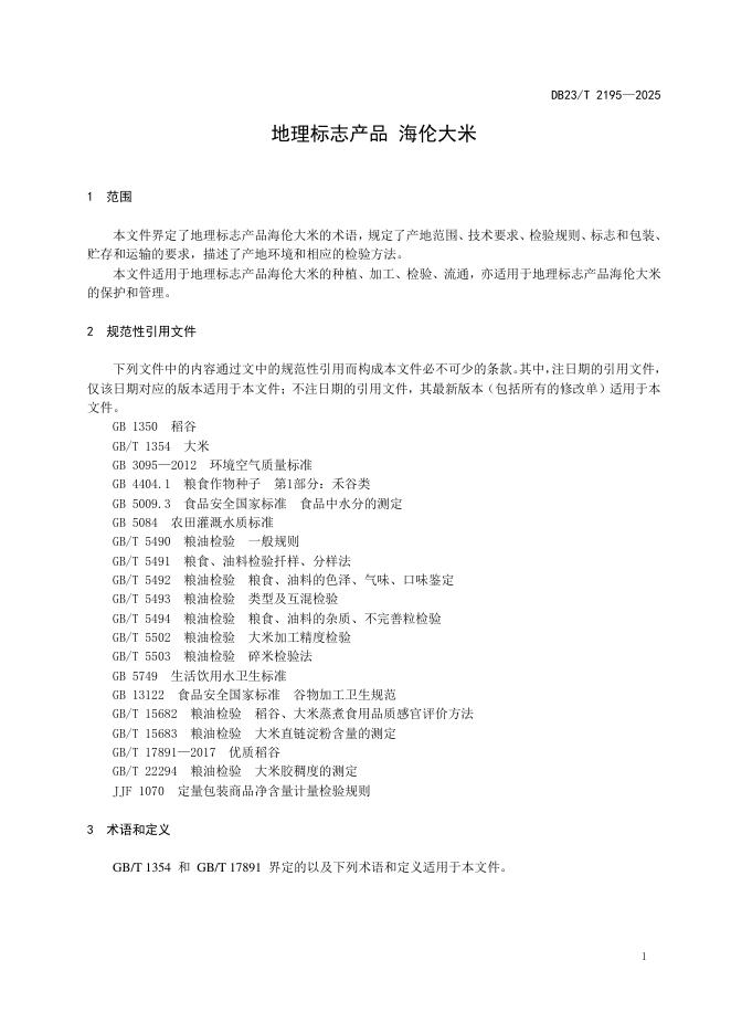 DB23/T 2195-2025 地理标志产品 海伦大米