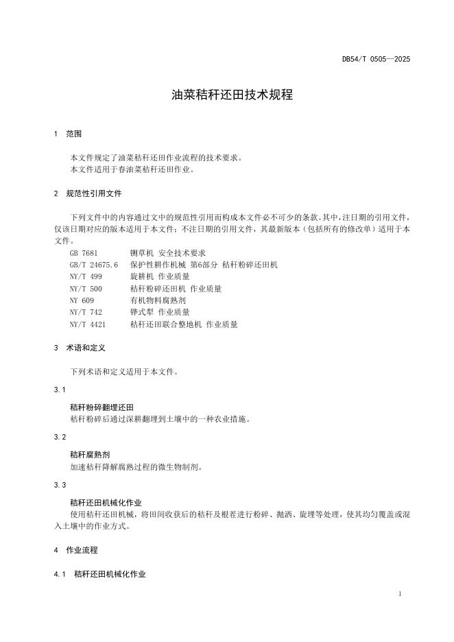 DB54/T 0505-2025 油菜秸秆还田技术规程