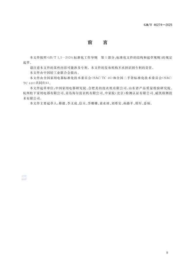 GB/T 46274-2025 二手家用电器产品品质鉴定规范 洗衣机