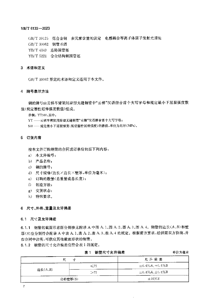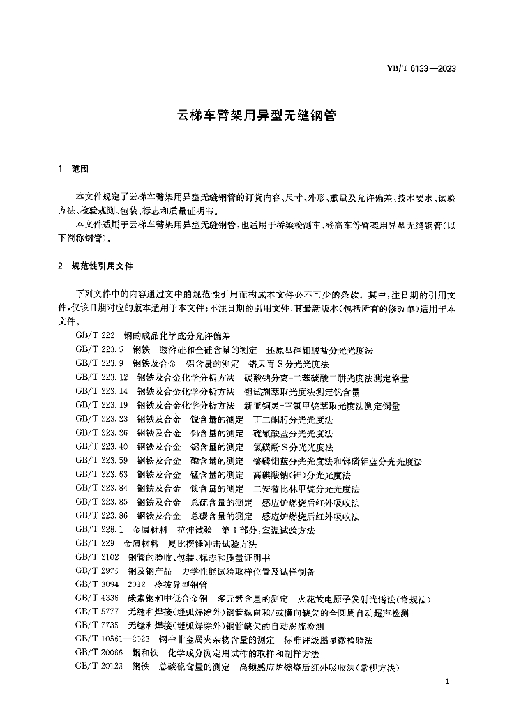 YB/T 6133-2023 云梯车臂架用异型无缝钢管