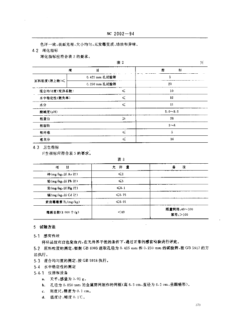 SC/T 2002-1994 中国对虾配合饲料