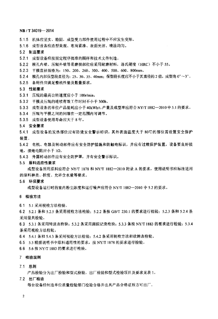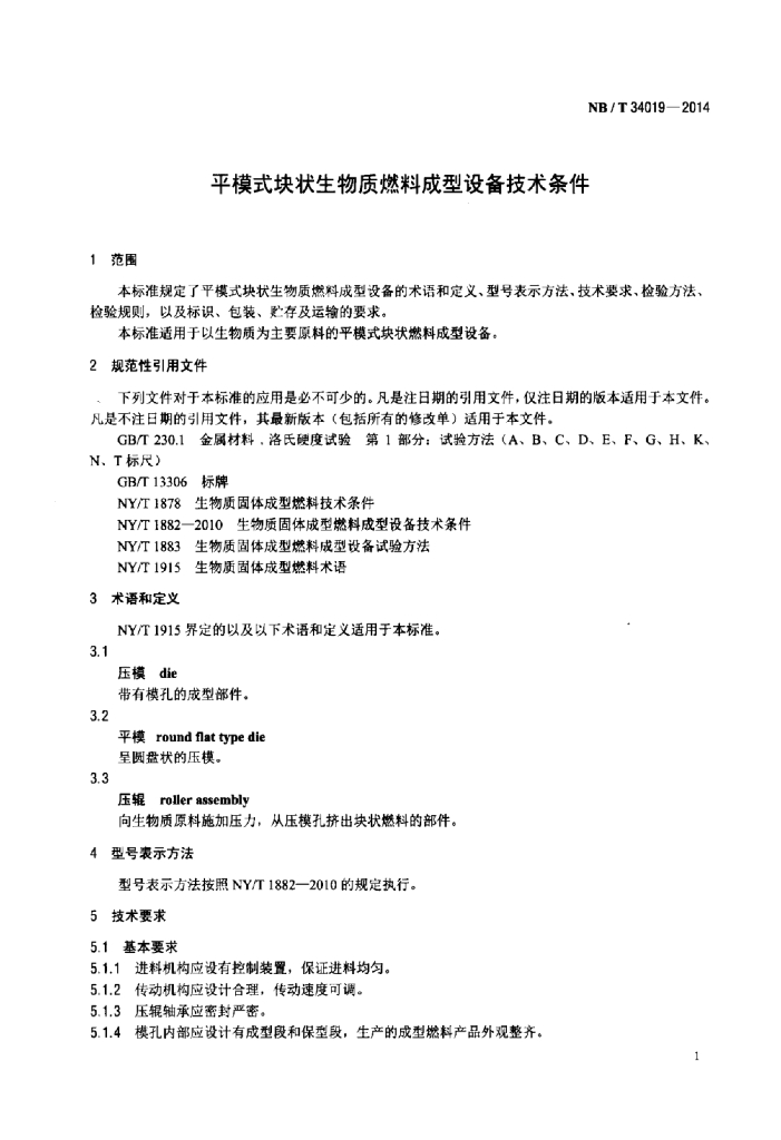 NB/T 34019-2014 平模式块状生物质燃料成型设备技术条件
