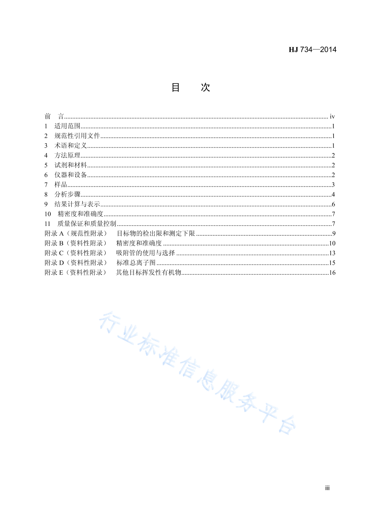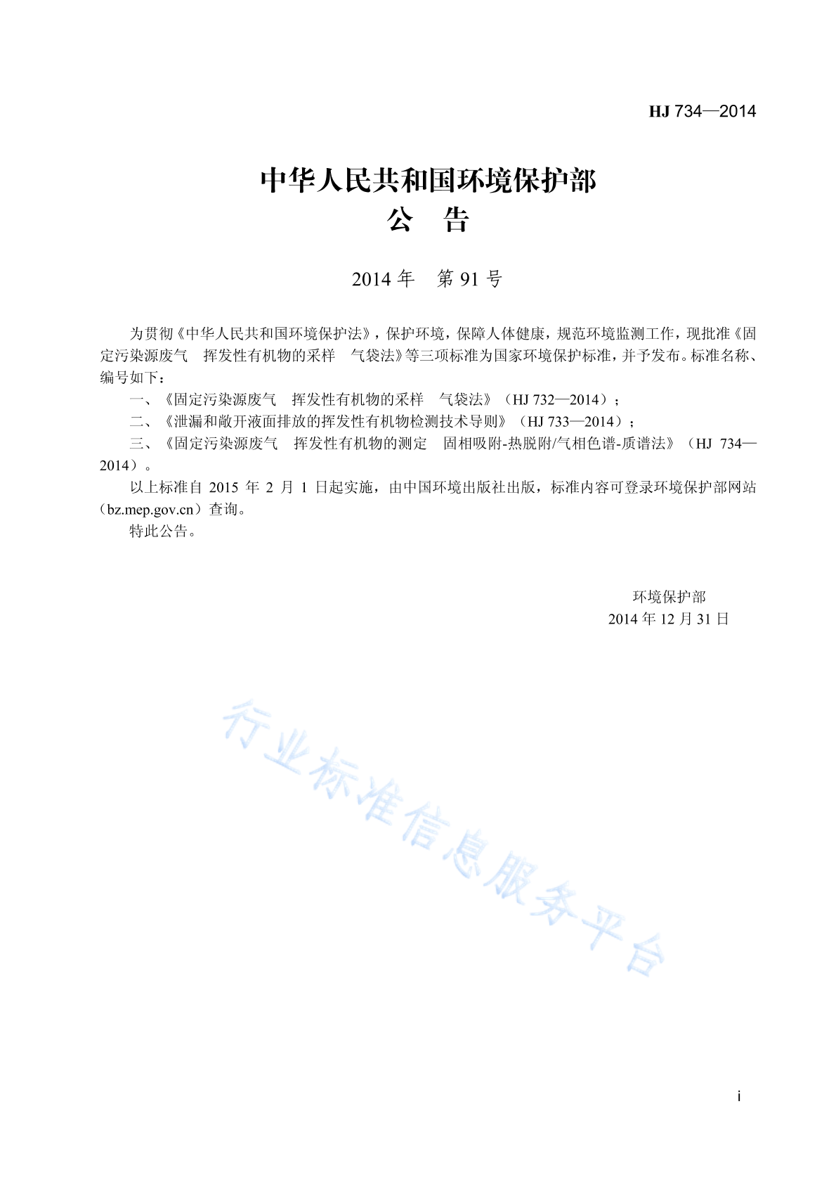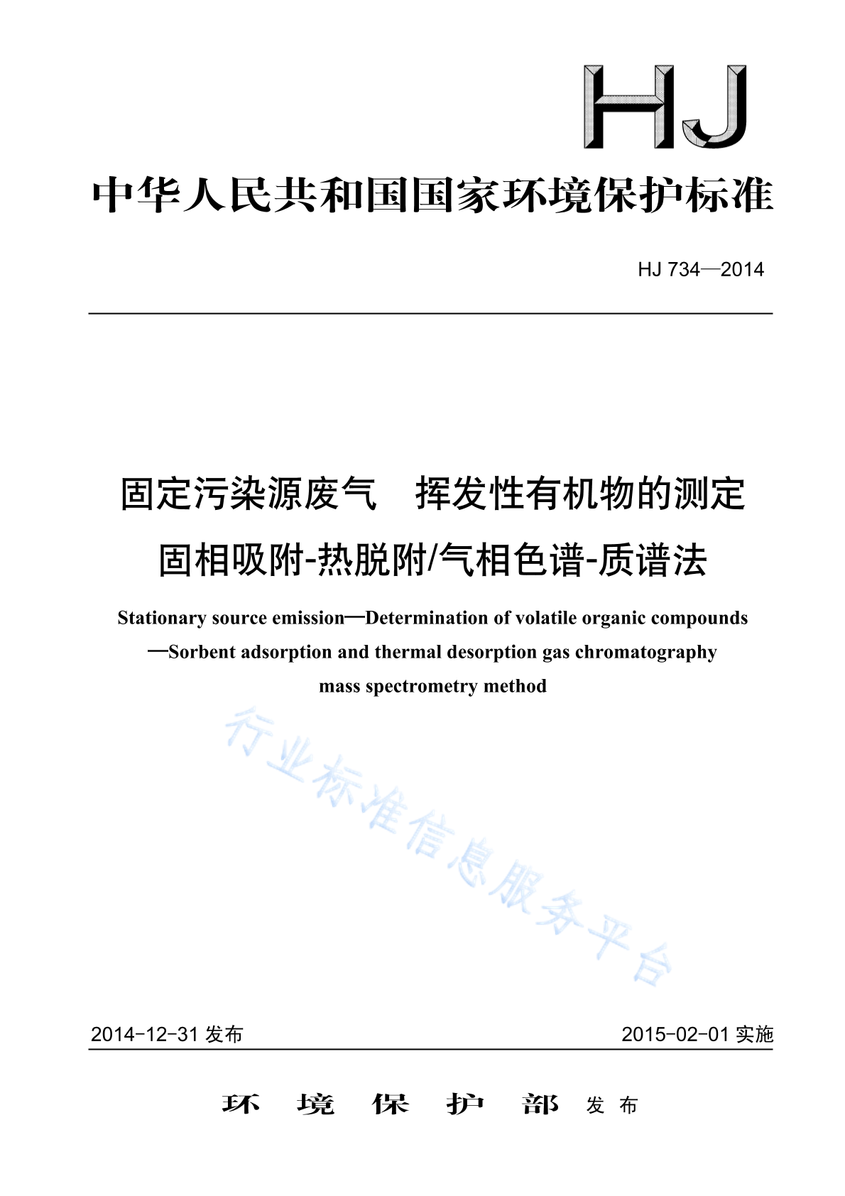 HJ 734-2014 固定污染源废气 挥发性有机物的测定 固相吸附-热脱/附气相色谱-质谱法