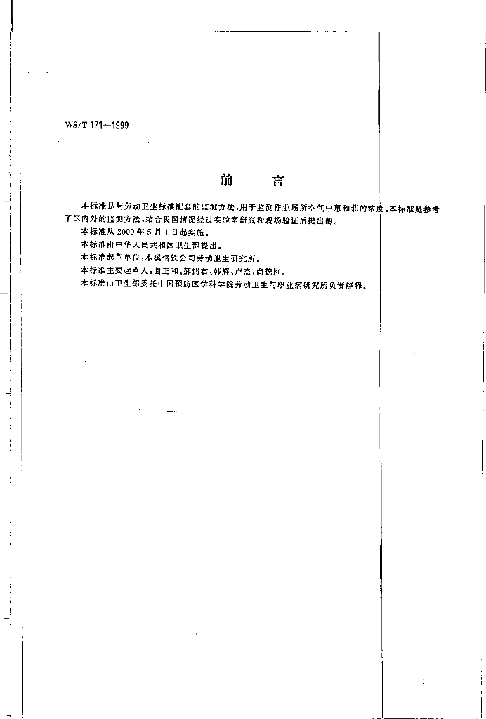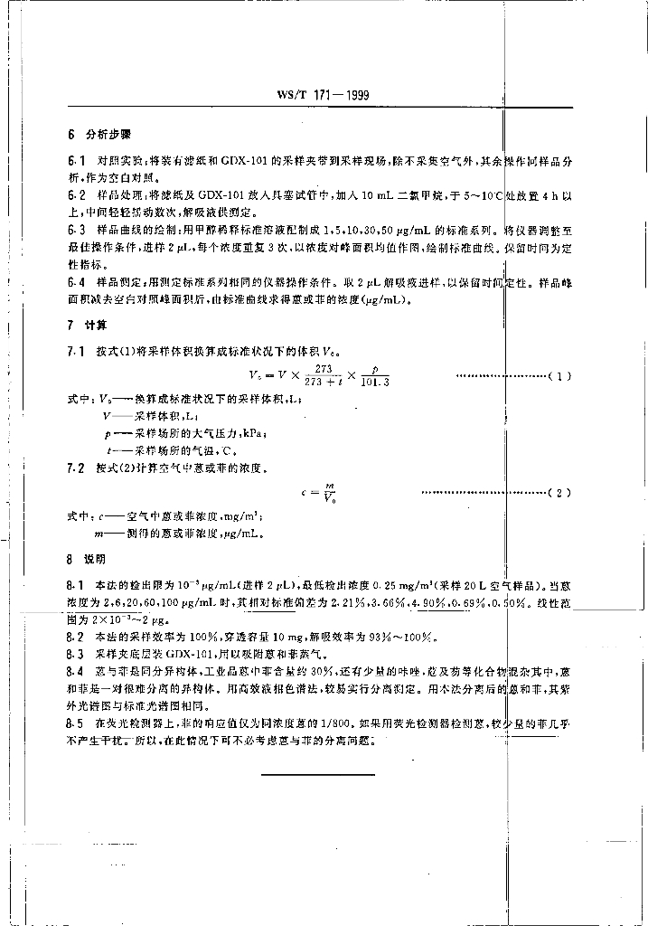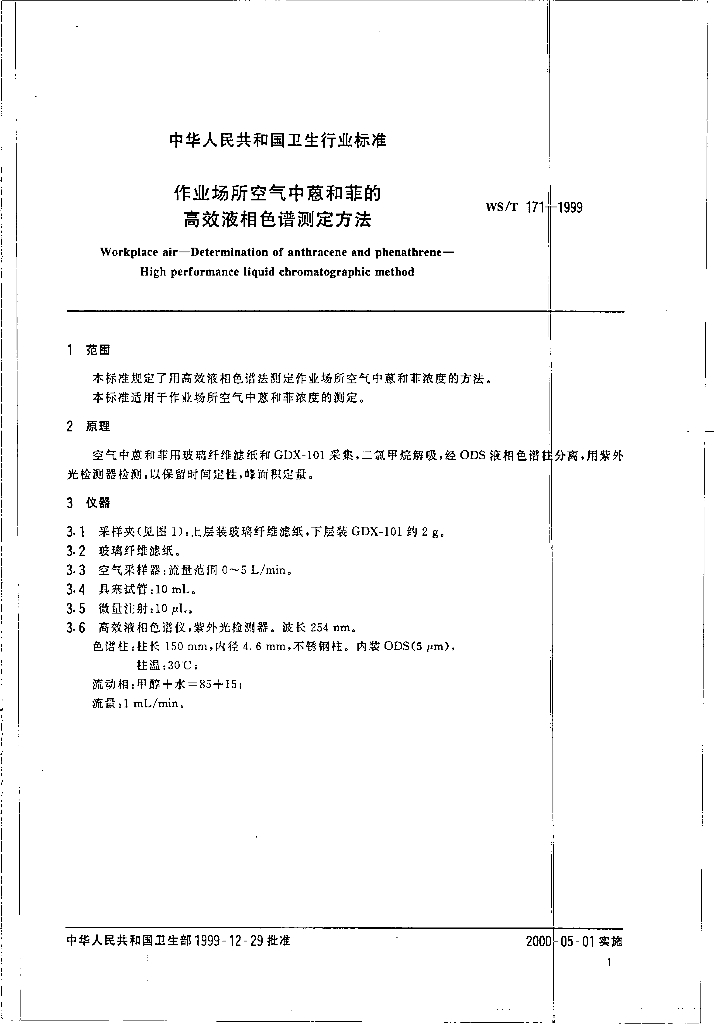 WS/T 171-1999 作业场所空气中蒽和菲的高效液相色谱测定方法