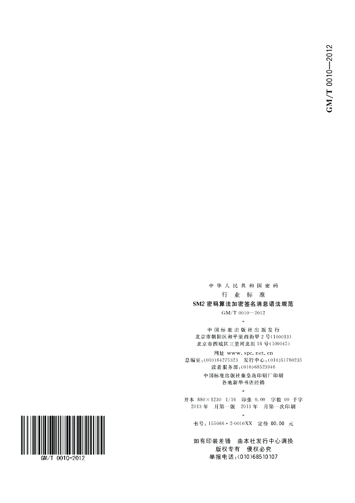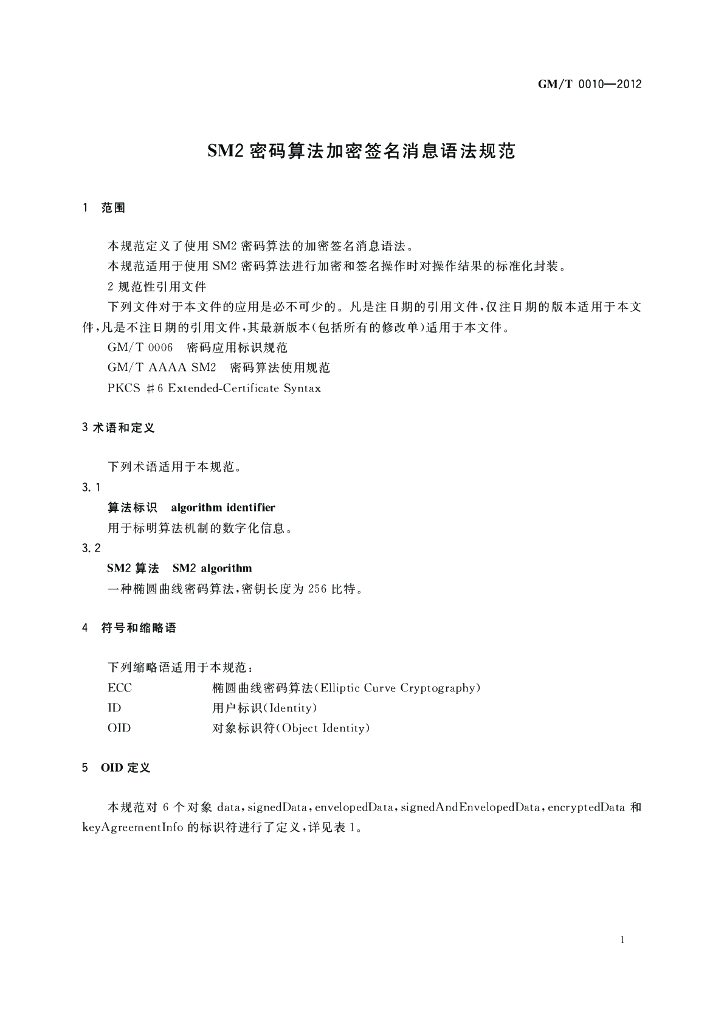 GM/T 0010-2012 SM2 密码算法加密签名消息语法规范