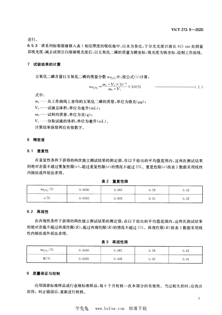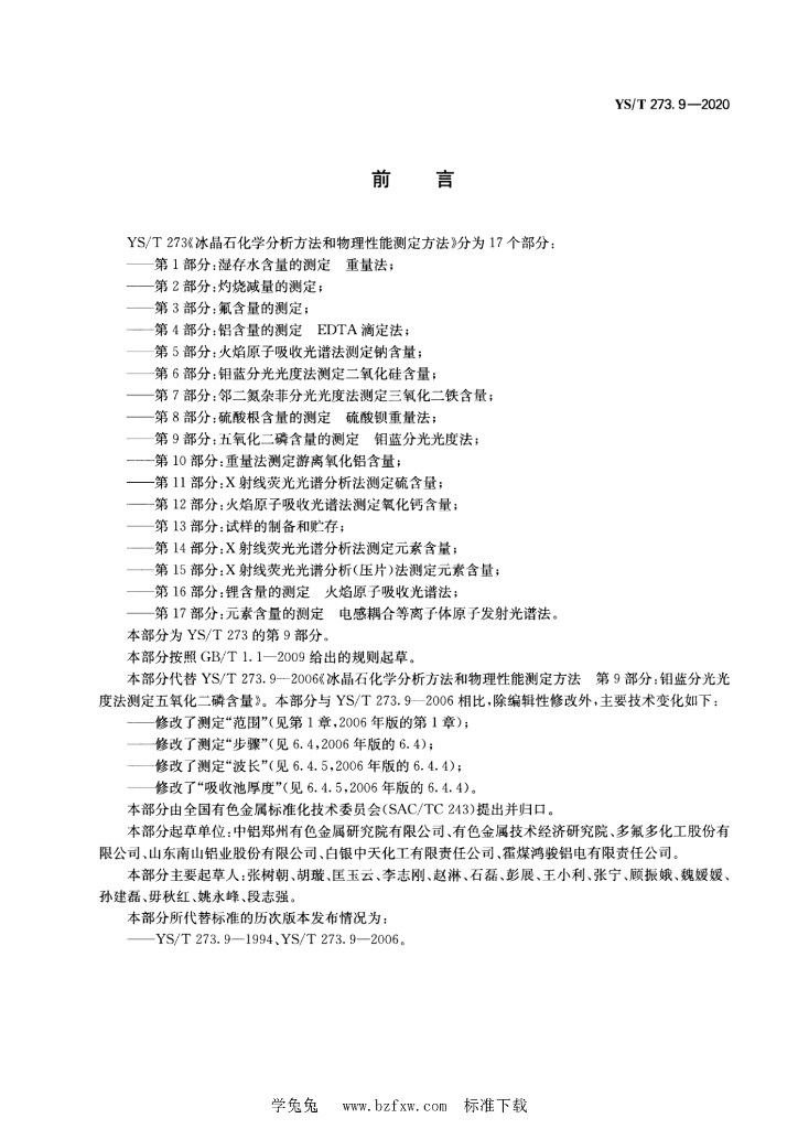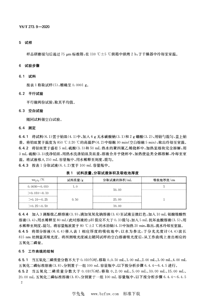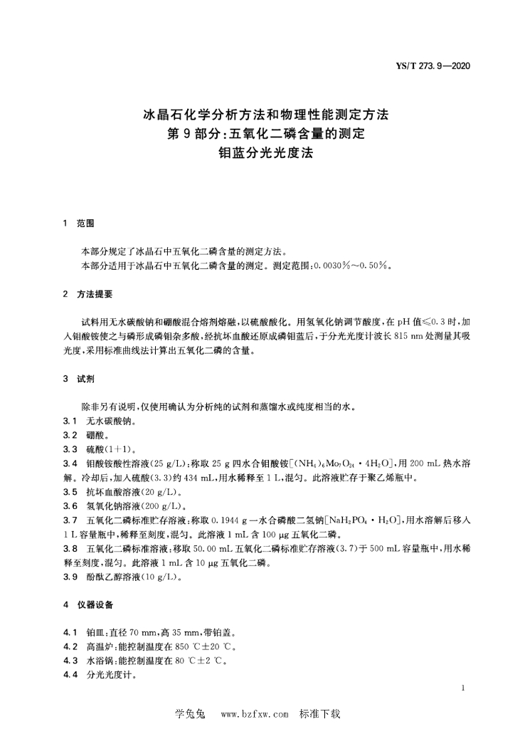 YS/T 273.9-2020 冰晶石化学分析方法和物理性能测定方法 第9部分:五氧化二磷含量的测定 钼蓝分光光度法