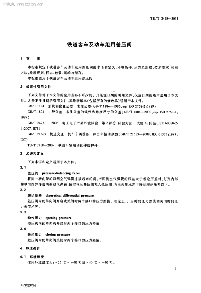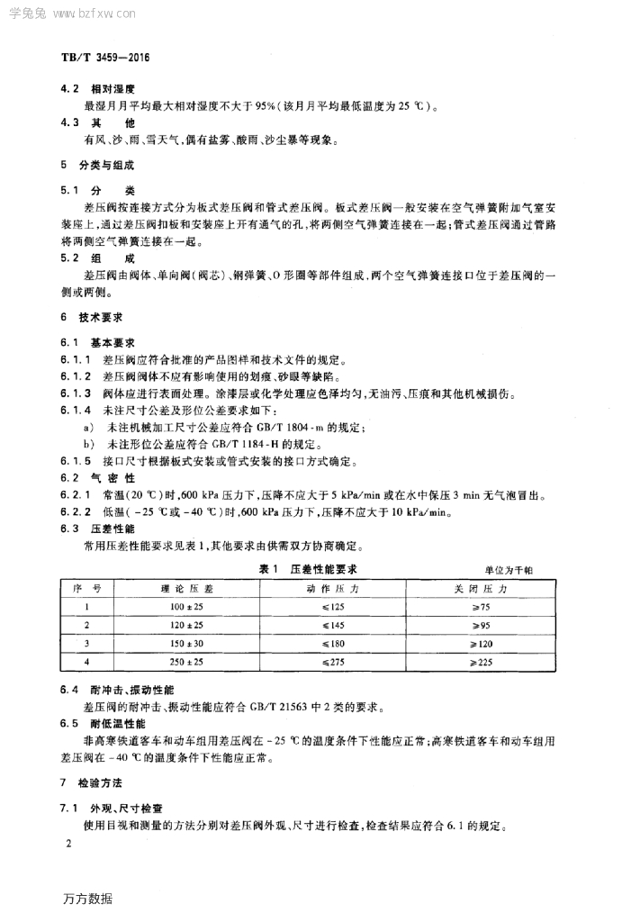 TB/T 3459-2016 铁道客车及动车组用差压阀