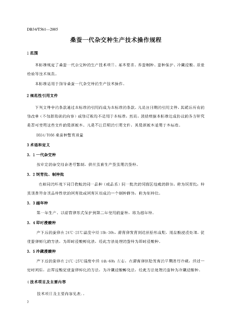 DB34/T 561-2005 桑蚕一代杂交种生产技术操作规程