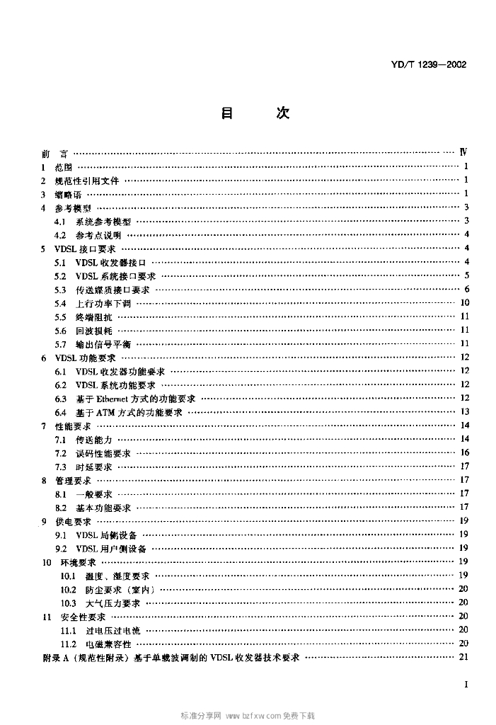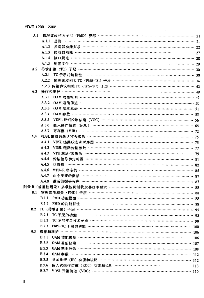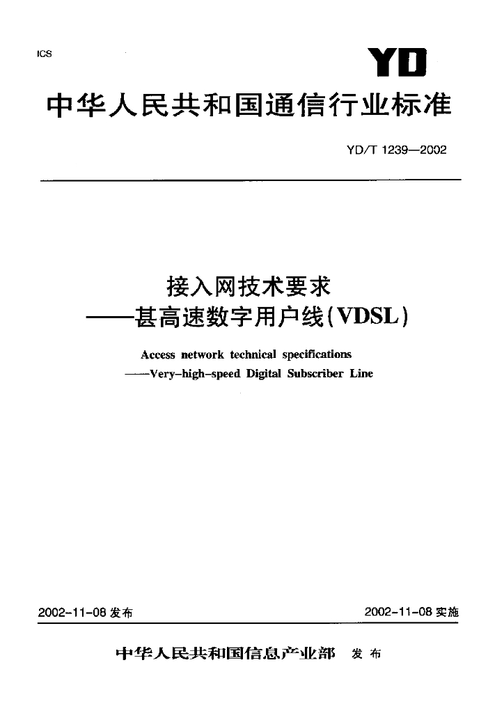 YD/T 1239-2002 接入网技术要求——甚高速数字用户线(VDSL)