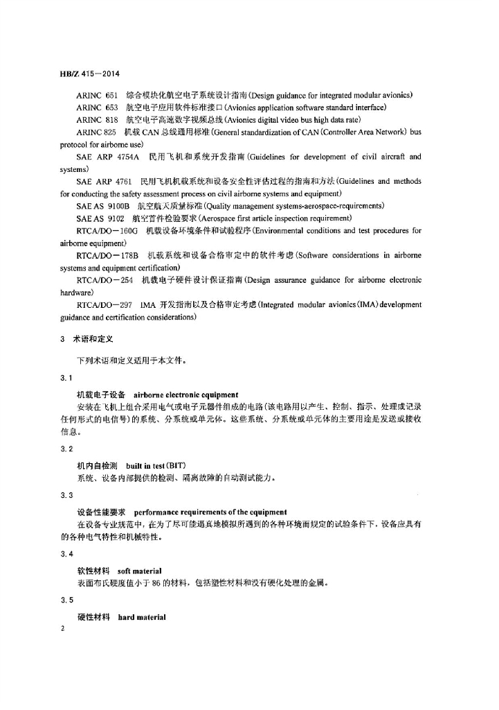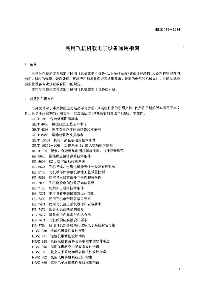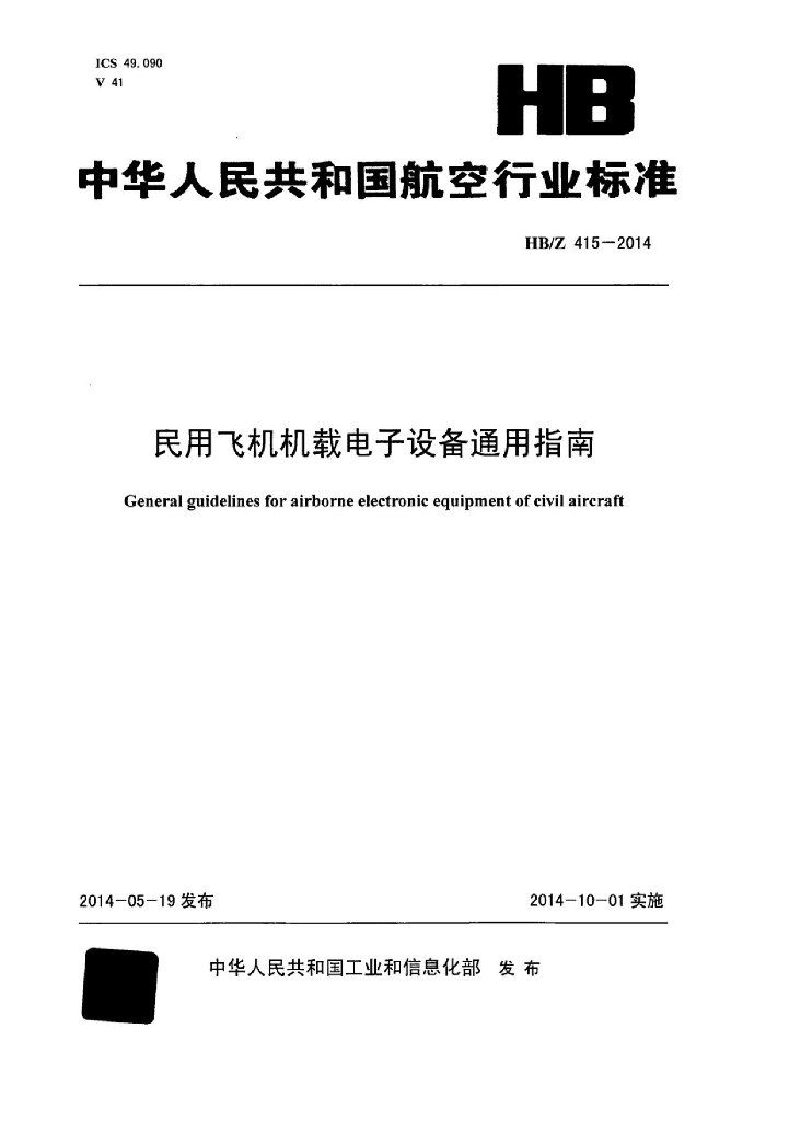 HB/Z 415-2014 民用飞机机载电子设备通用指南