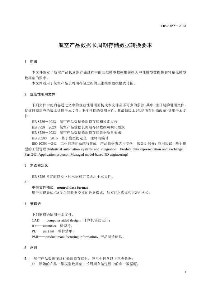 HB 8727-2023 航空产品数据长周期存储数据转换要求
