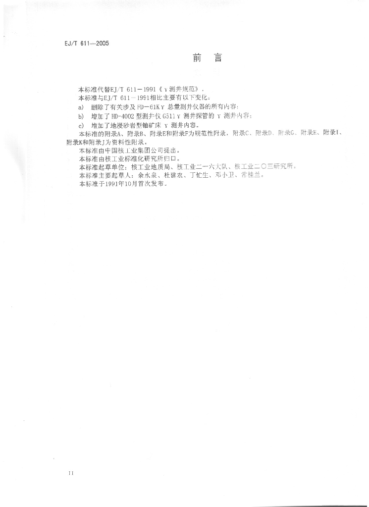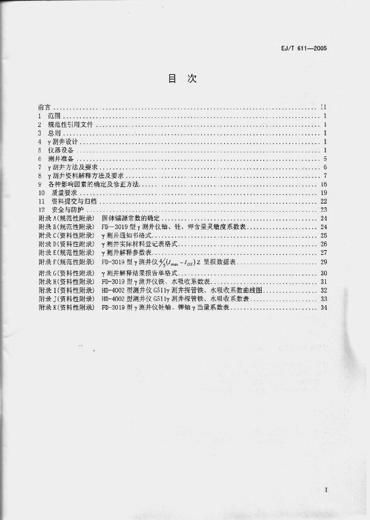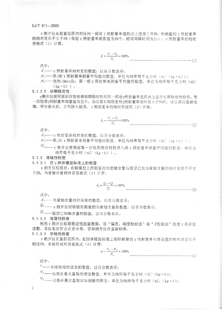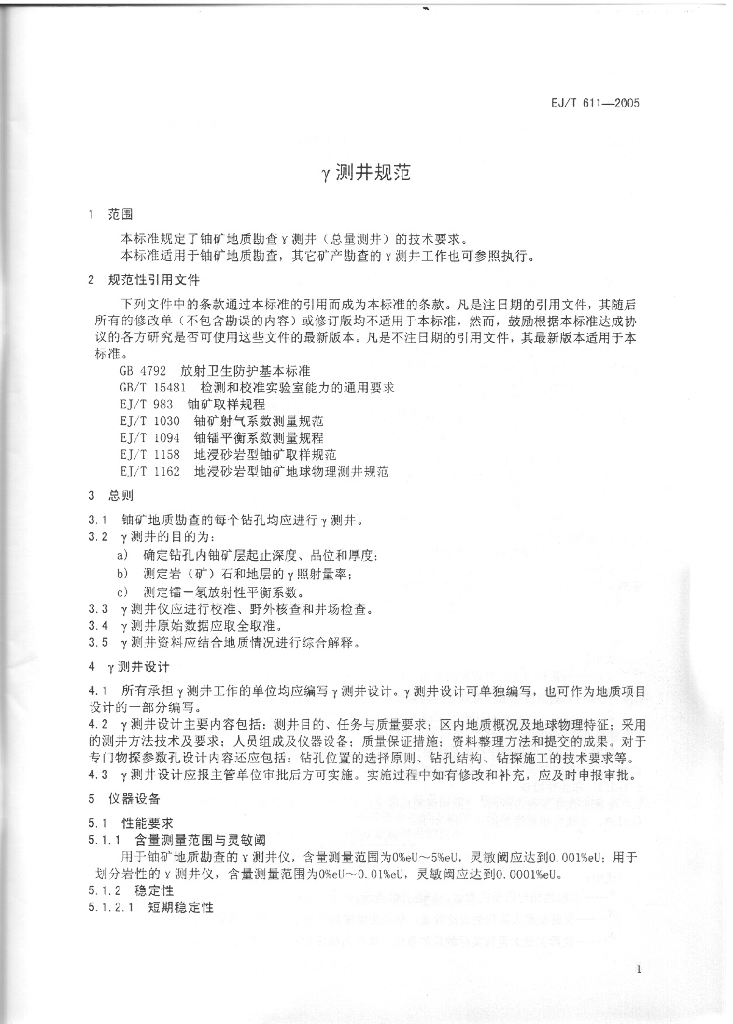 EJ/T 611-2005 γ测井规范