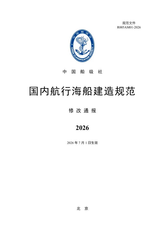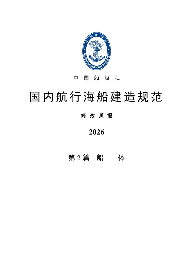 中国船级社CCS:国内航行海船建造规范2026修改通报