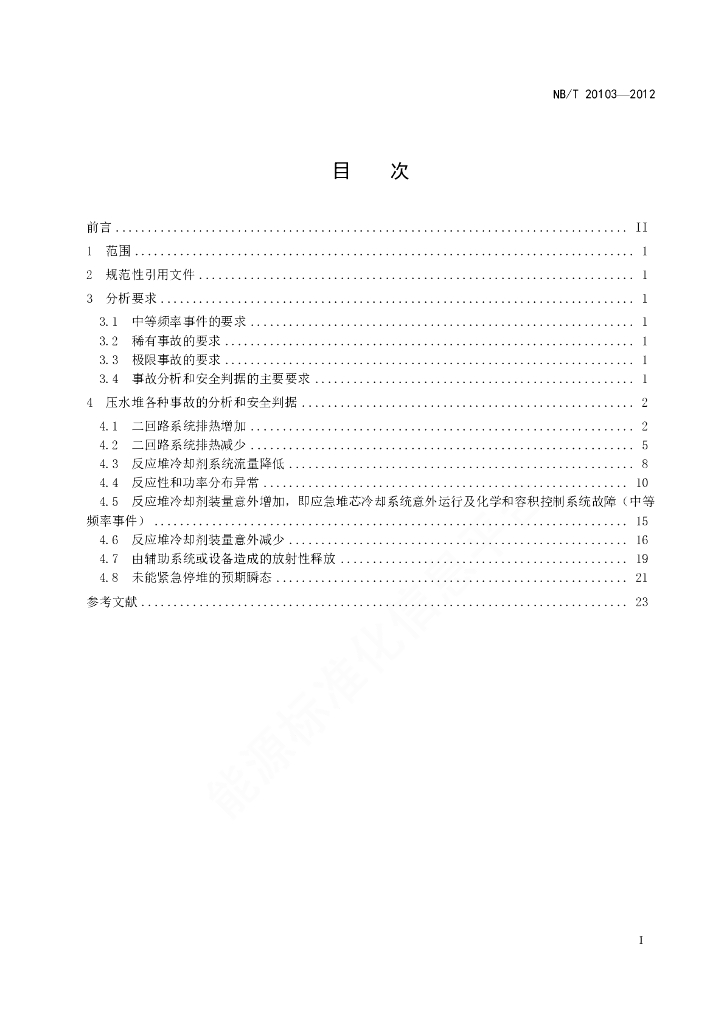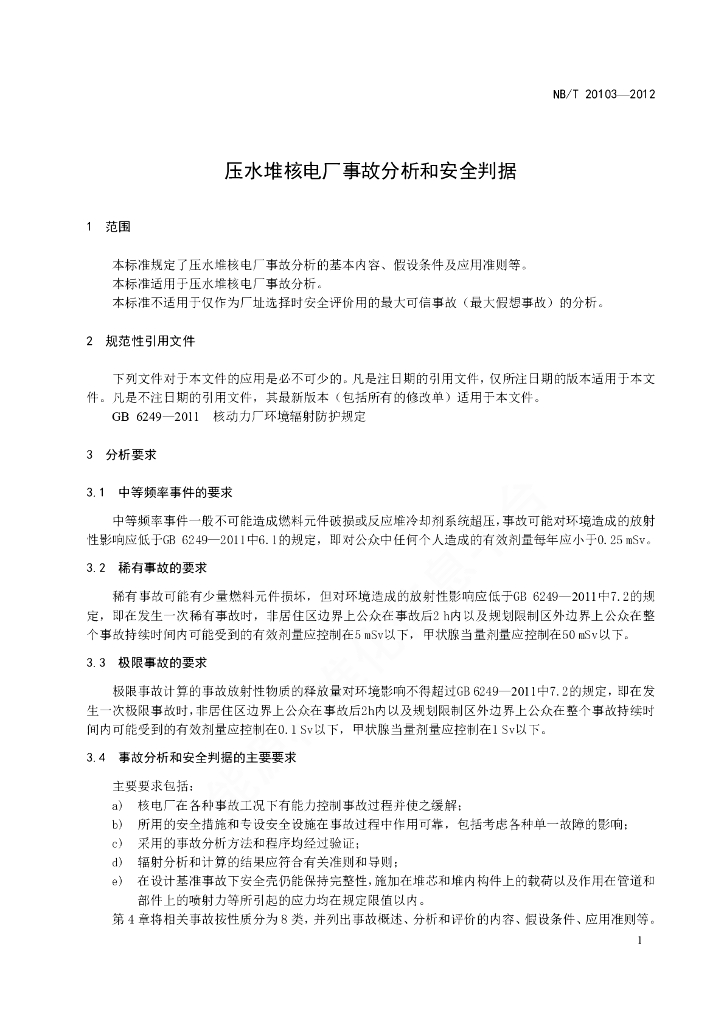 NB/T 20103-2012 压水堆核电厂事故分析和安全判据