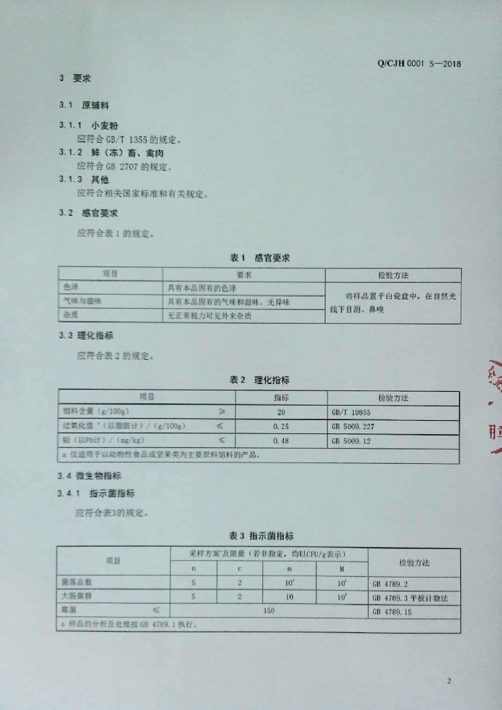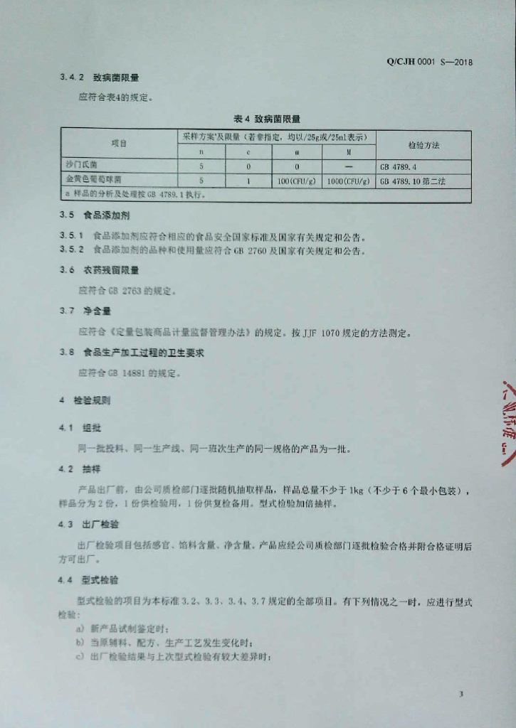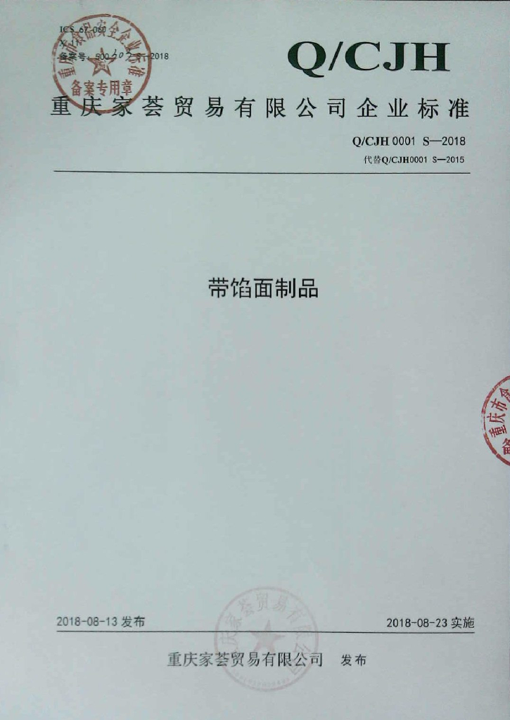 Q/CJH 0001S-2018 带馅面制品