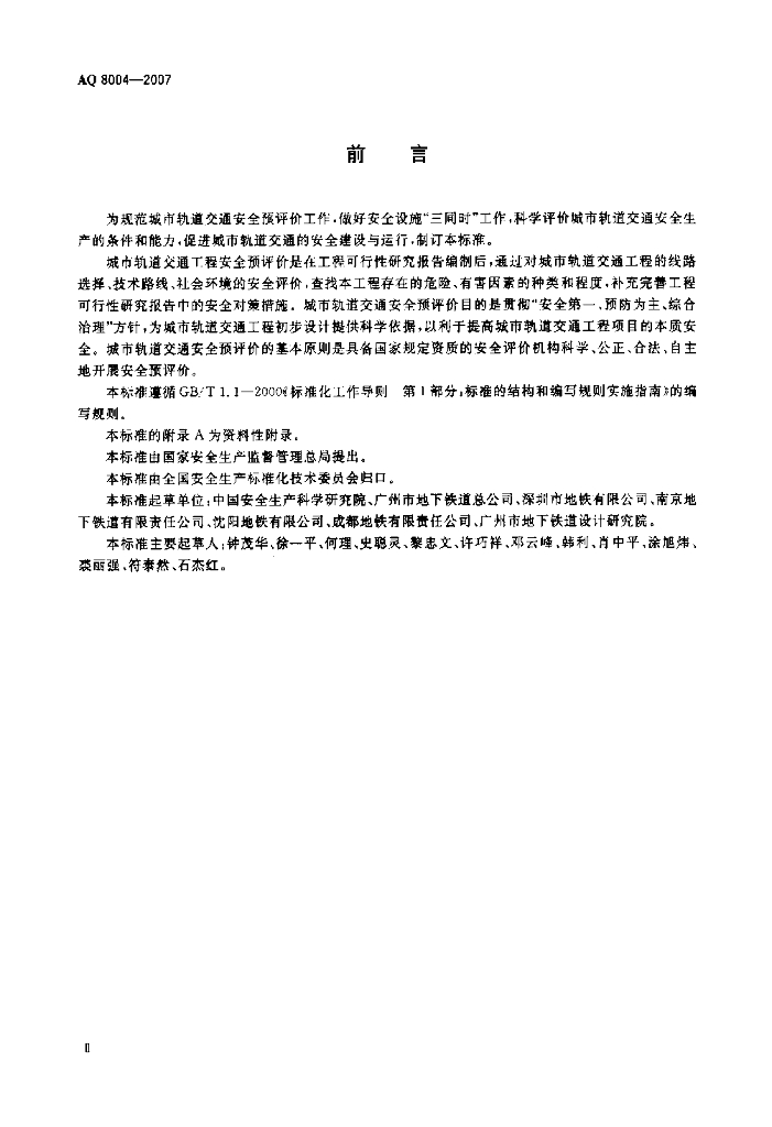 AQ 8004-2007 城市轨道交通安全预评价细则