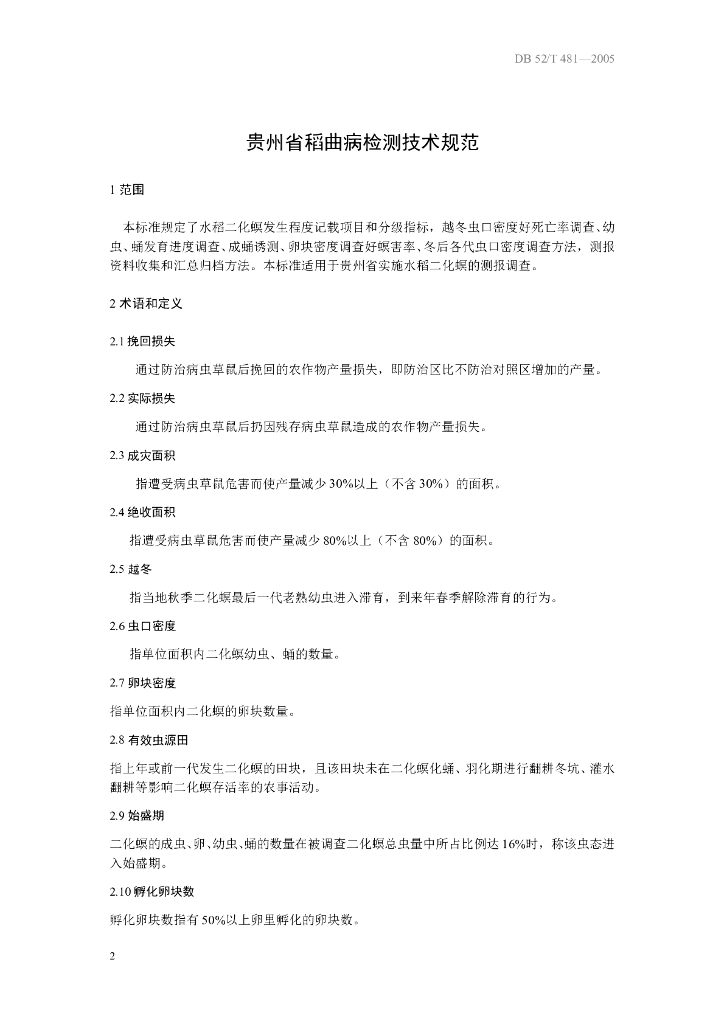 DB52/T 481-2005 贵州省水稻二化螟检测技术规范